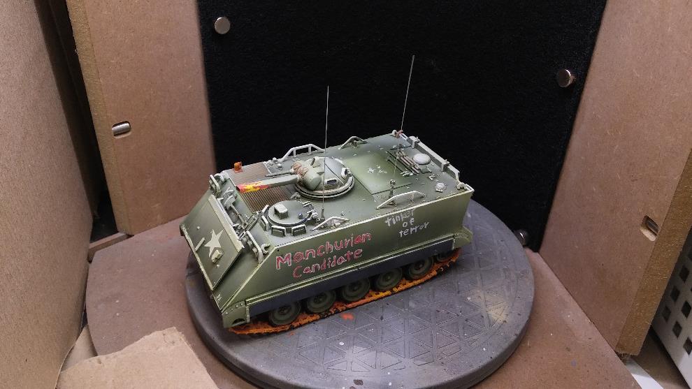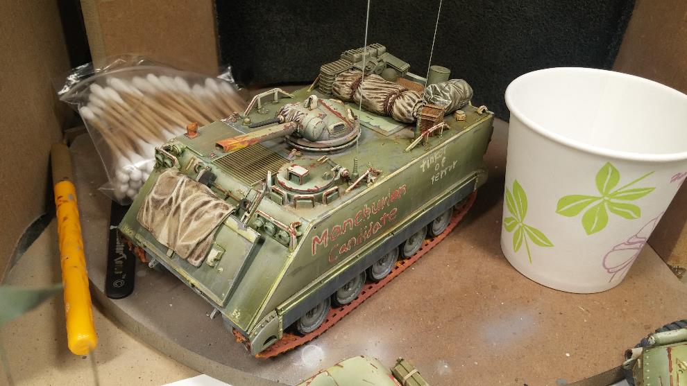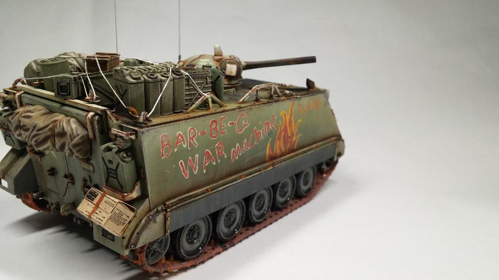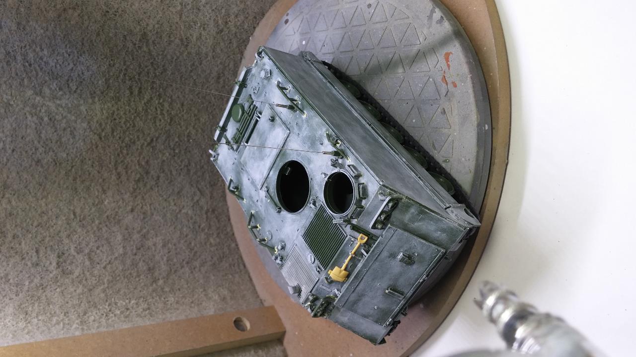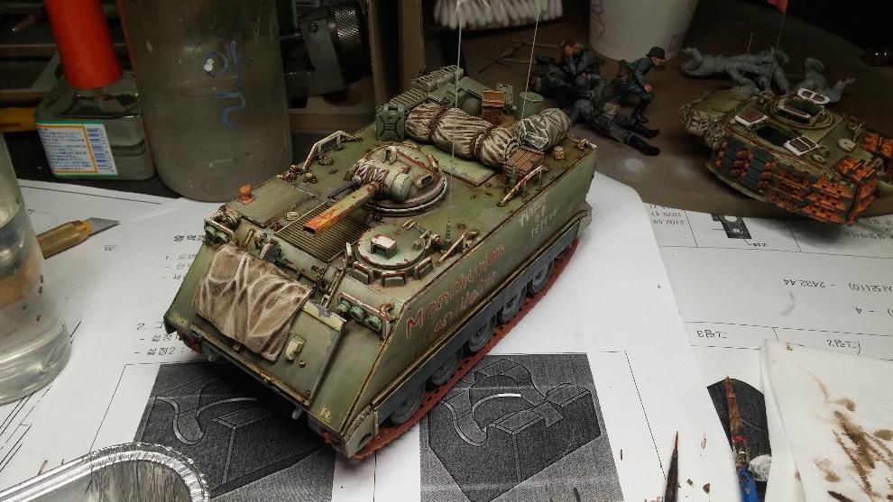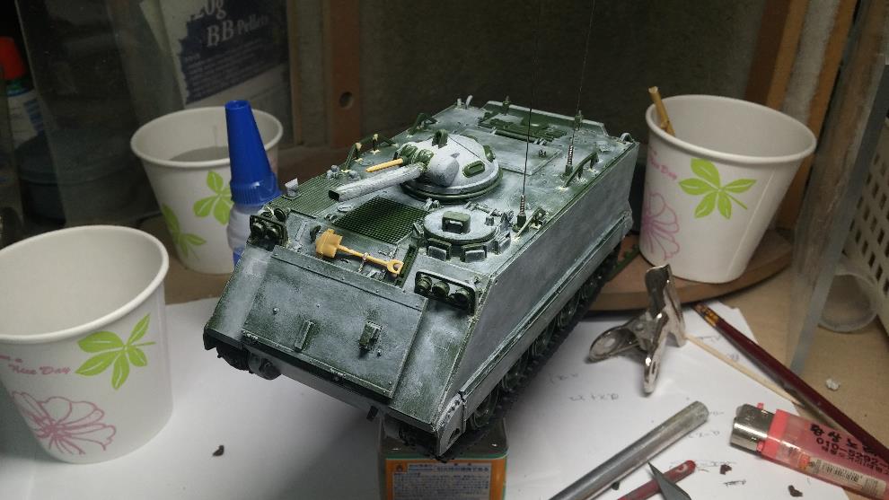 치핑을 진행합니다. M113은 차체를 알루미늄합금으로 만들었으나 라이트가드 .포탑.등의 얇은 금속은 강판을 사용한듯 합니다.