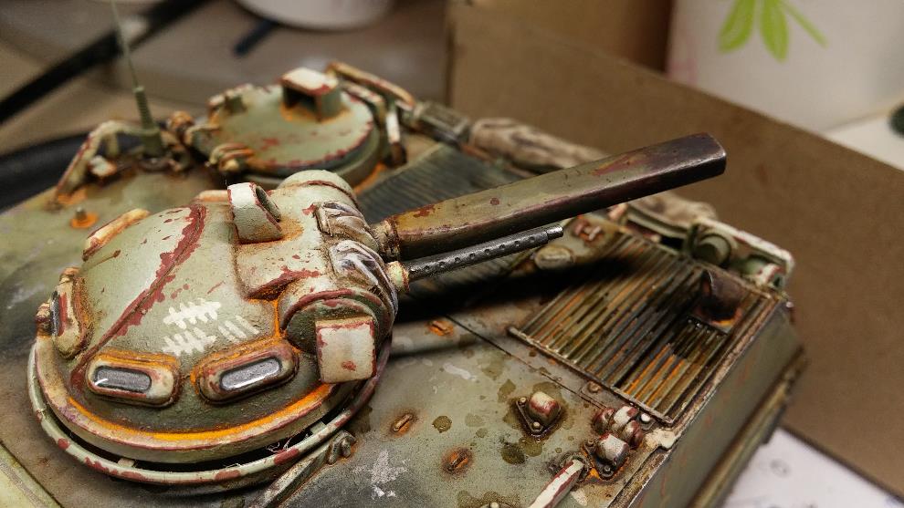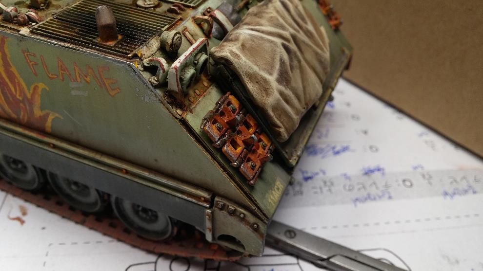 화염방사기 커버.기관총 방수포등을 세부 도색 해주었습니다. 저 시점에서 데칼이 완전히 정착이 되지 않아서 대부분의 데칼을 제거 하였습니다.