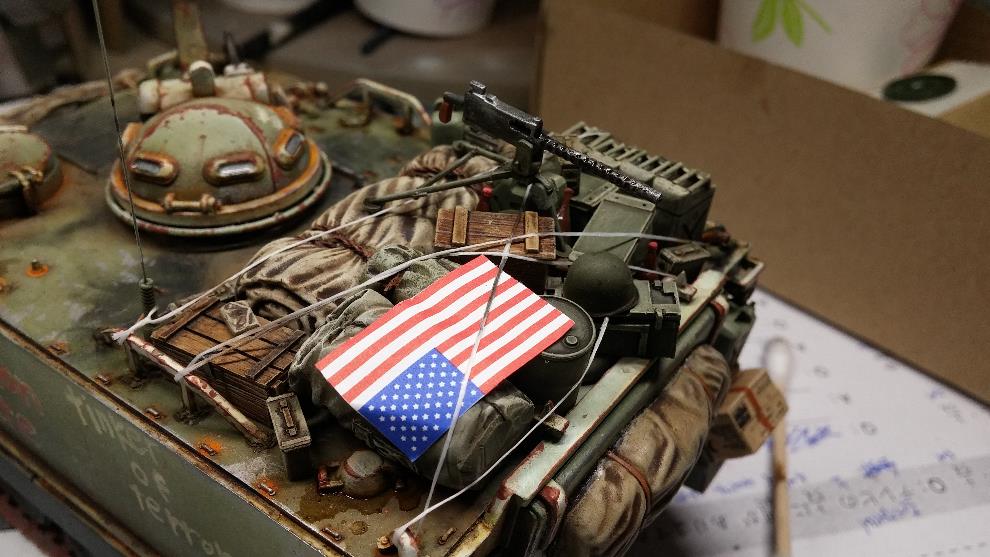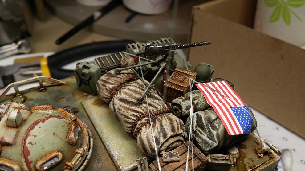 좀 허전해서 .30 기관총을 올려주었습니다. 원래는 모포가 무게 때문에 내려앉아야 정상입니다..