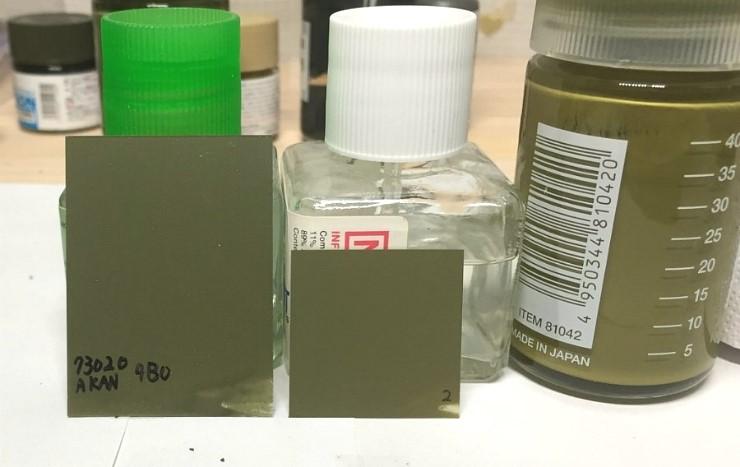 우측이 제가 조색한 타미야 아크릴을 시험삼아 뿌려본 컬러칩입니다.