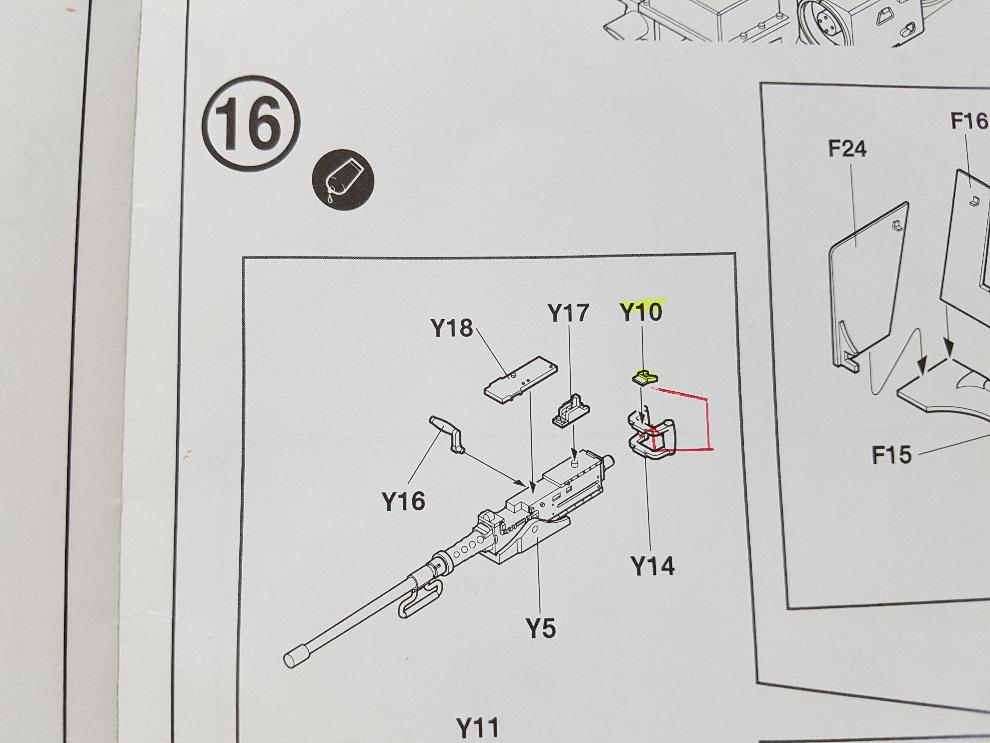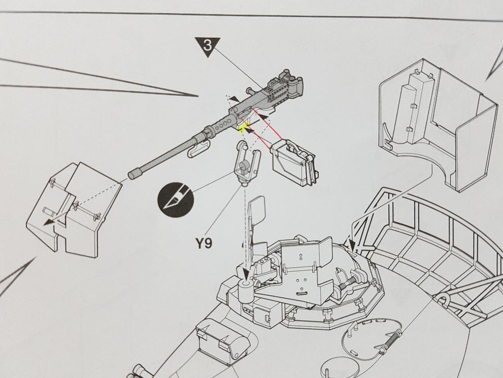 칼50기관총 조립부 입니다. Y10번이 발사버튼으로 보이는데, 사진 등을 검색해보니 손잡이 안쪽에 있더군요.
