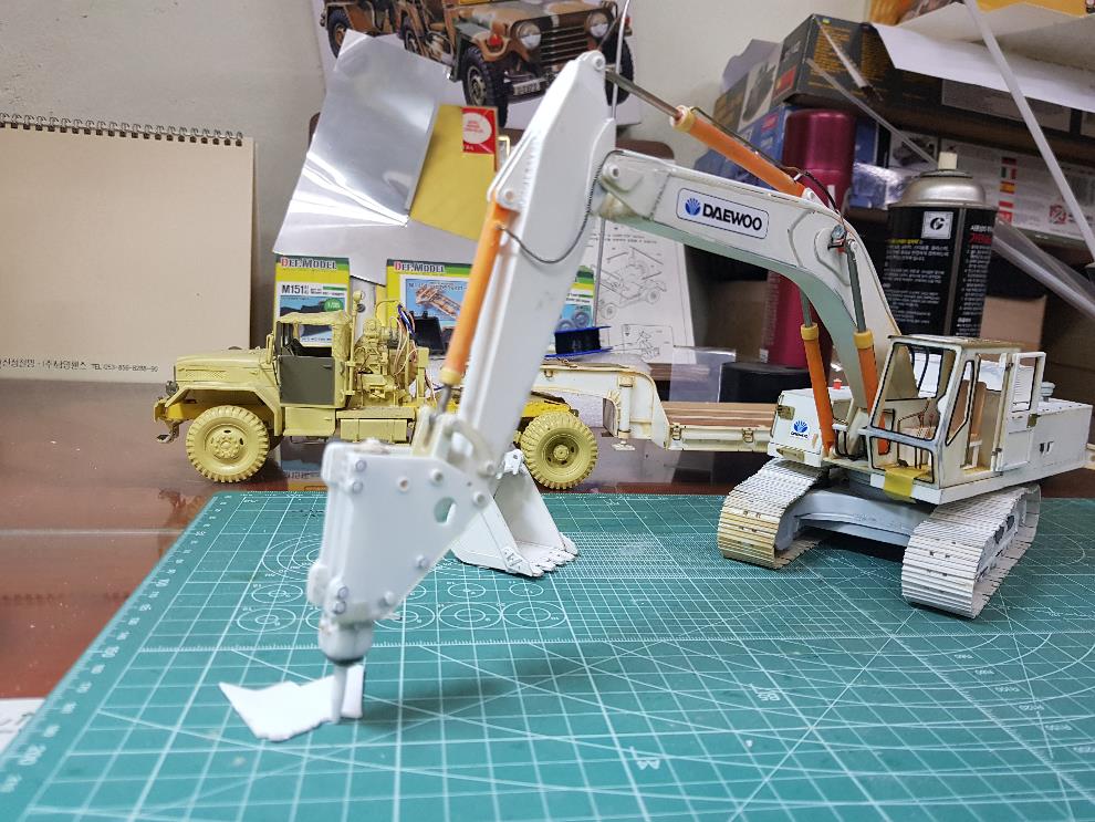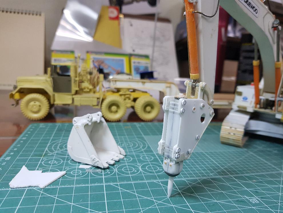 하세가와 1/35 HITACHI ZX135US킷으로 건설장비시리즈 4~5번쯤에 유압브레이커 추가모델넣고 출시 한다!에 손 모가지 겁니다ㅎㅎㅎ