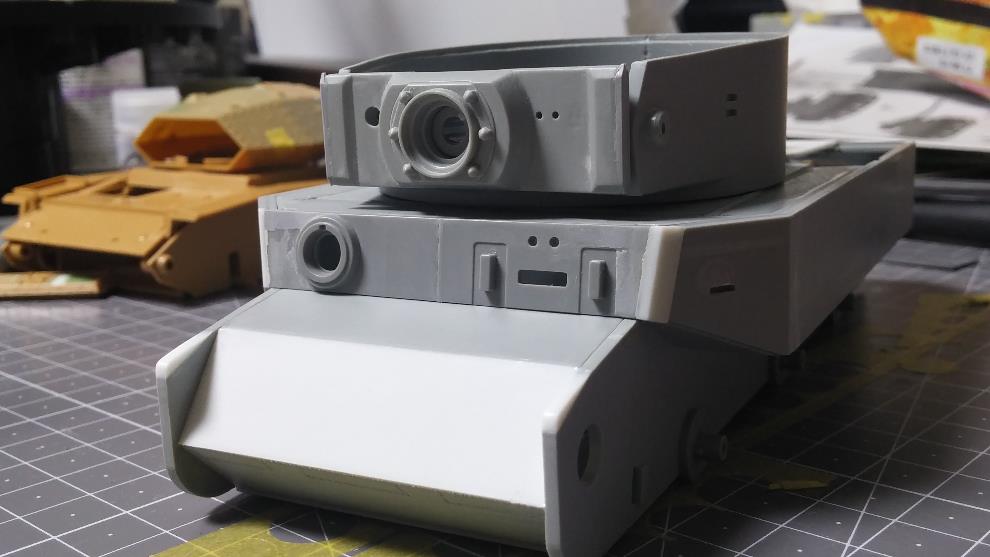전면 장갑판은 앞에서 봤을 때 살짝 솟아있는 모양이 되어야 합니다.