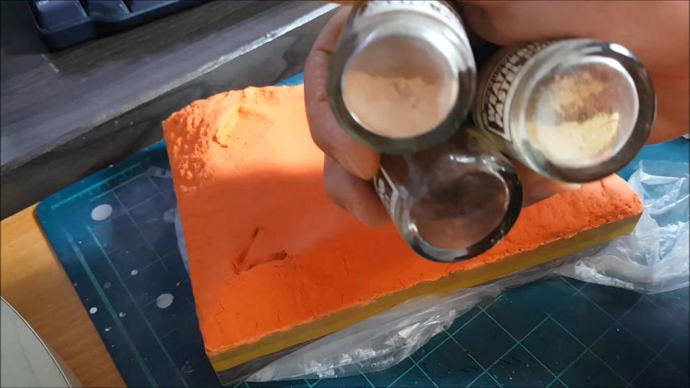 작은 스케일이라면 파스텔을 갈아서 흙 대신 올리는 것도 방법입니다.