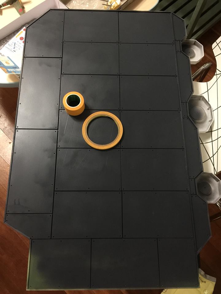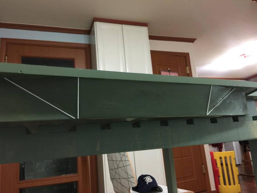 이 튀어나온 구조 만들 때 단차 매운다고 에폭시 퍼티를 대량으로 부어서 매꾸고 150번 사포로 팍팍! 밀어댄걸 잊고 있었다가...기본 도장 뿌리고 발견했지요.