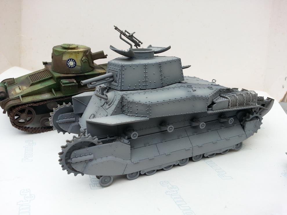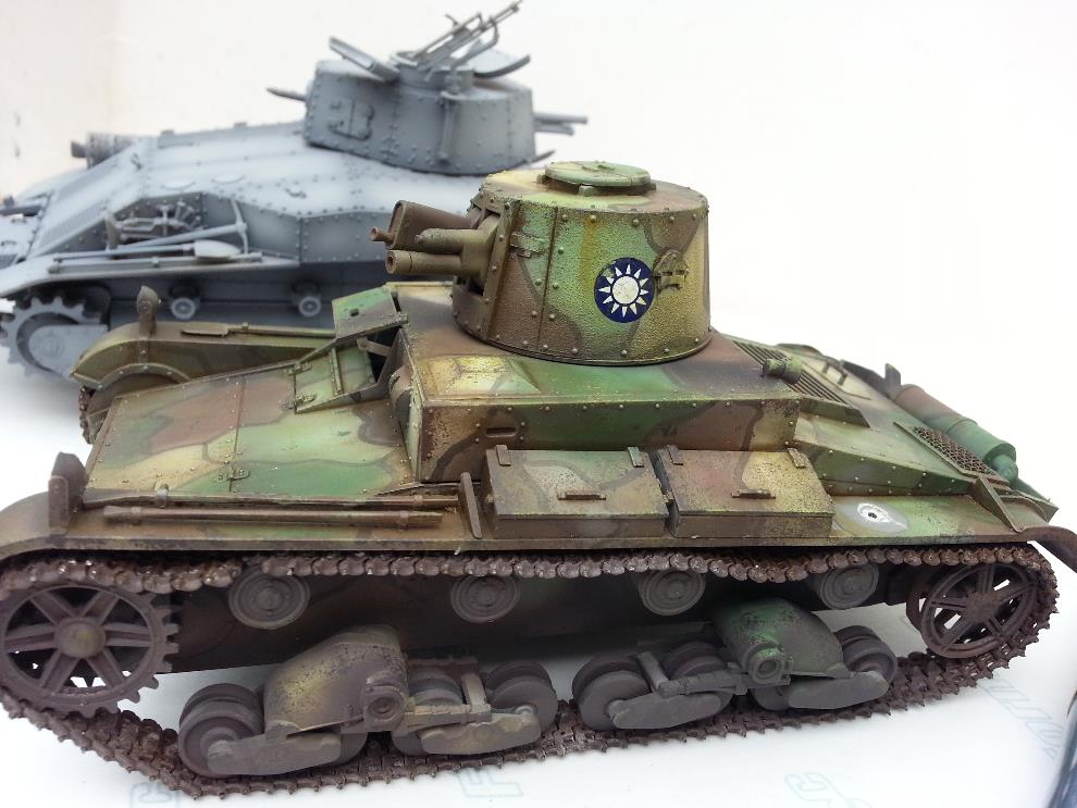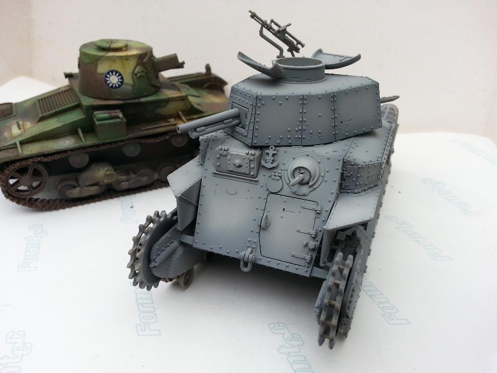 그 다음 제작후 2~3년간 쳐 박혀 있던 89식 전차를 끄집어내서(일본잡지 부록으로 파인몰드에서 발매됐던 제품입니다) 해병대 버전으로 도색해줬습니다. 처음 구입하던 당시에는 육군버전의 전형적인 일본군 4색 위장을 해줄 계획이었지만 배경이 상해인데다 중국군 전차의 위장이 워낙 알록달록해서 그와 대조적인 느낌을 주기 위해 회색 단색으로 위장을 해줬습니다.