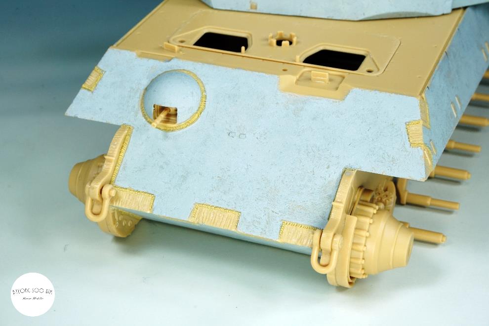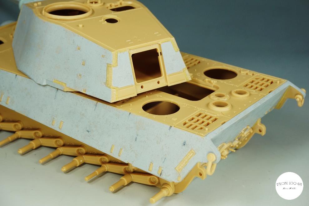 덕분에 이번에 큰 결심을 하고 아트 나이프와 송곳, 아크릴 커터를 이용하여 용접선 라인을 따라 파준 후, 타미야 에폭시 퍼티를 사용하여 용접선을 새겨넣었습니다.