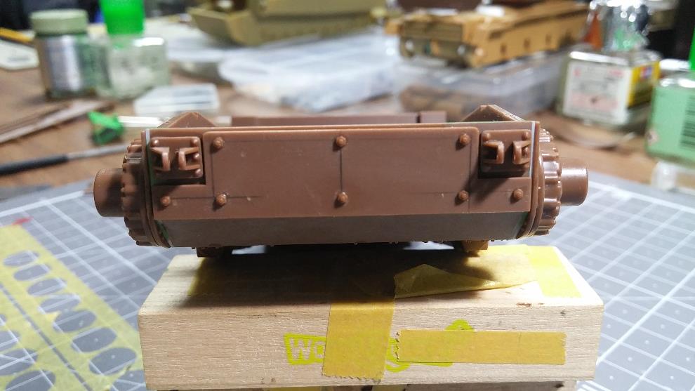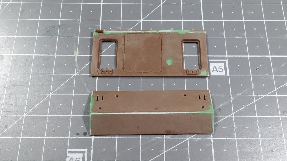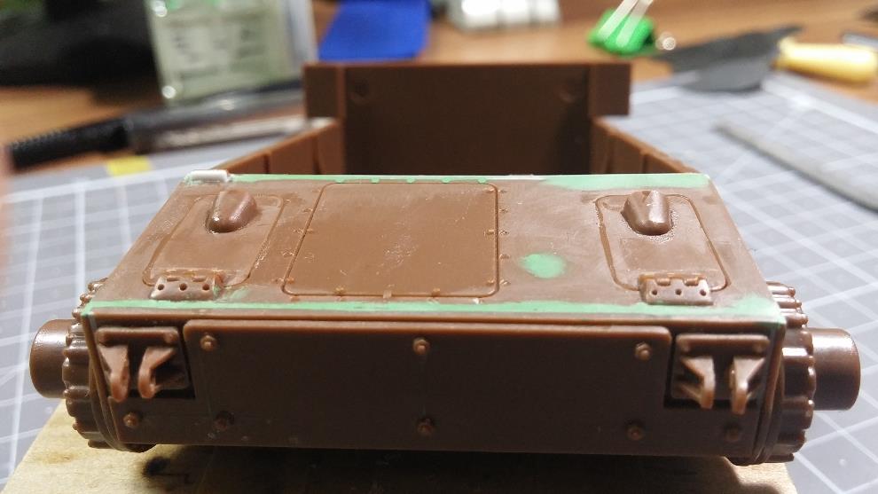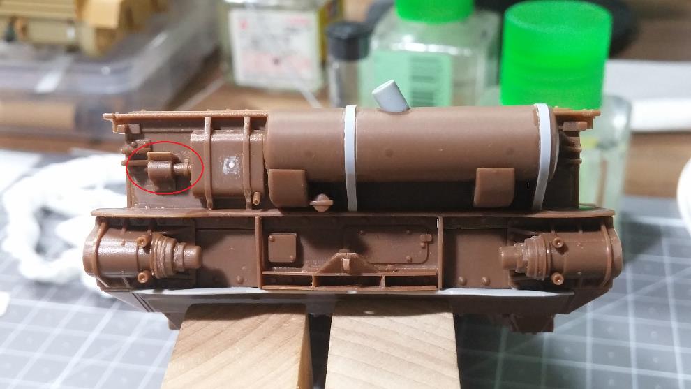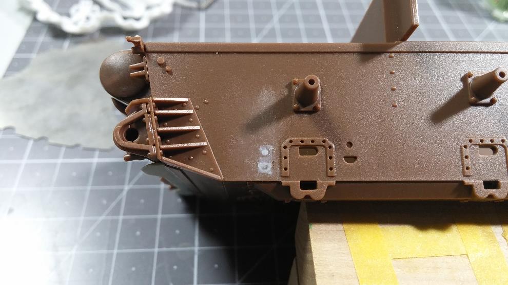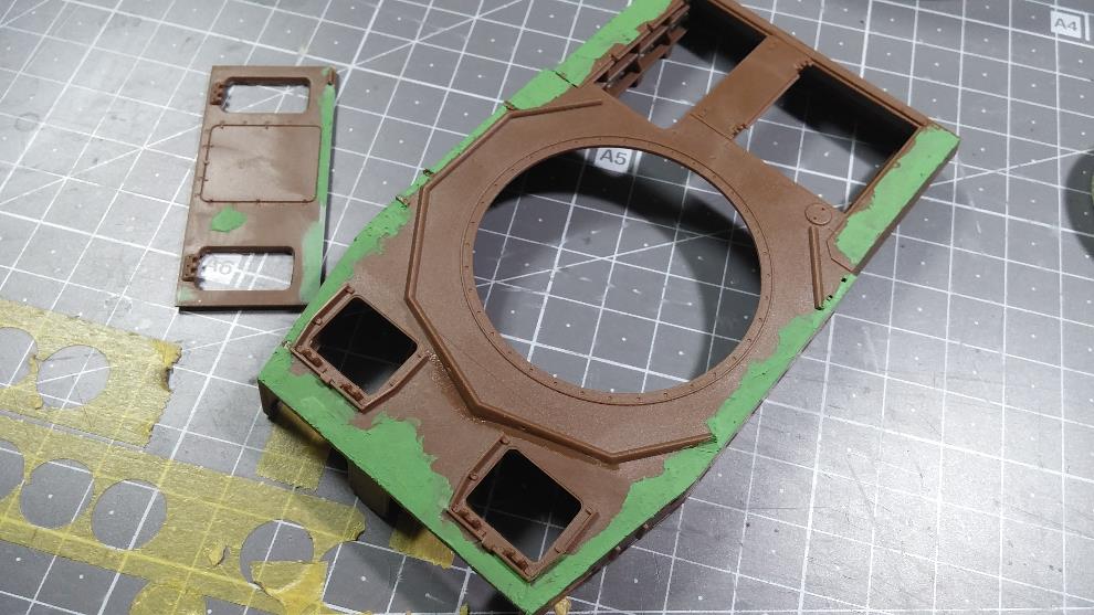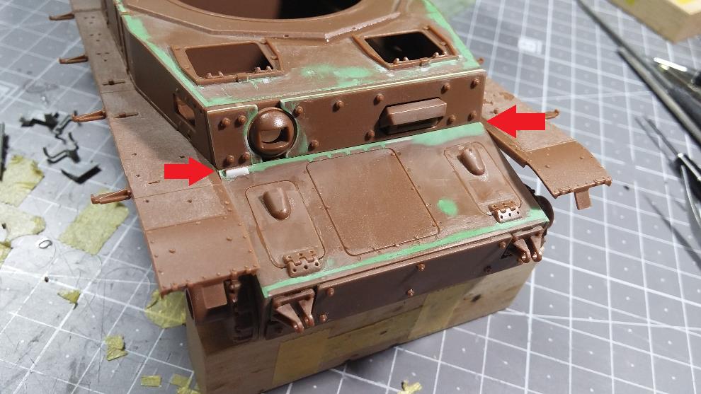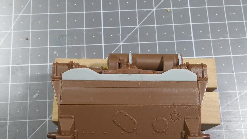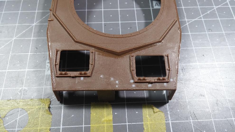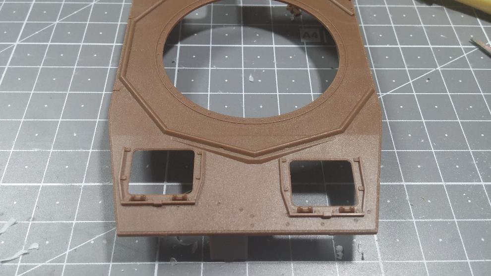 상판의 포탑 가드링 앞부분 턱을 제거 합니다.