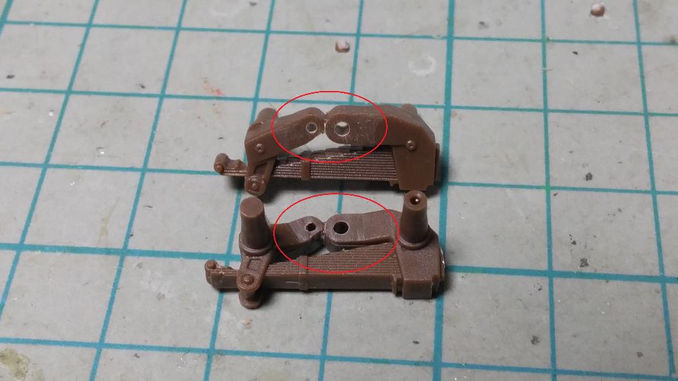 견인고리는 위치가 킷 부품대로가 아닌 사진 오른쪽 부분처럼 좀 더 위로 위치해야 합니다.