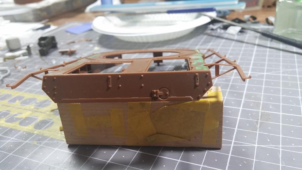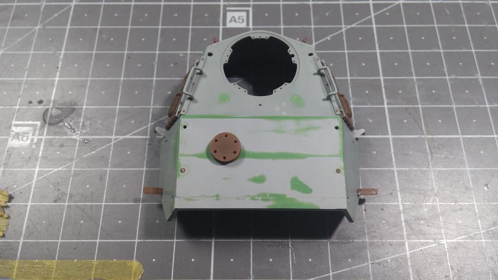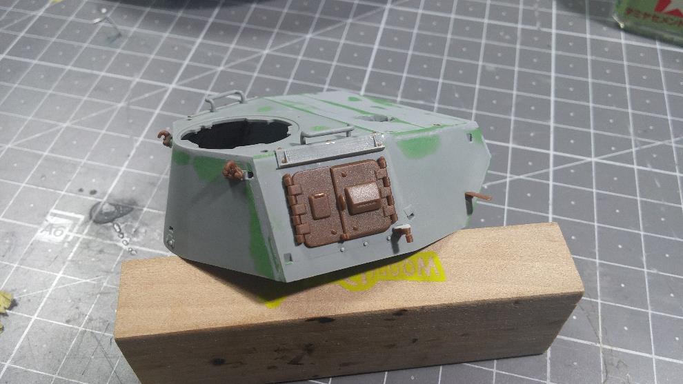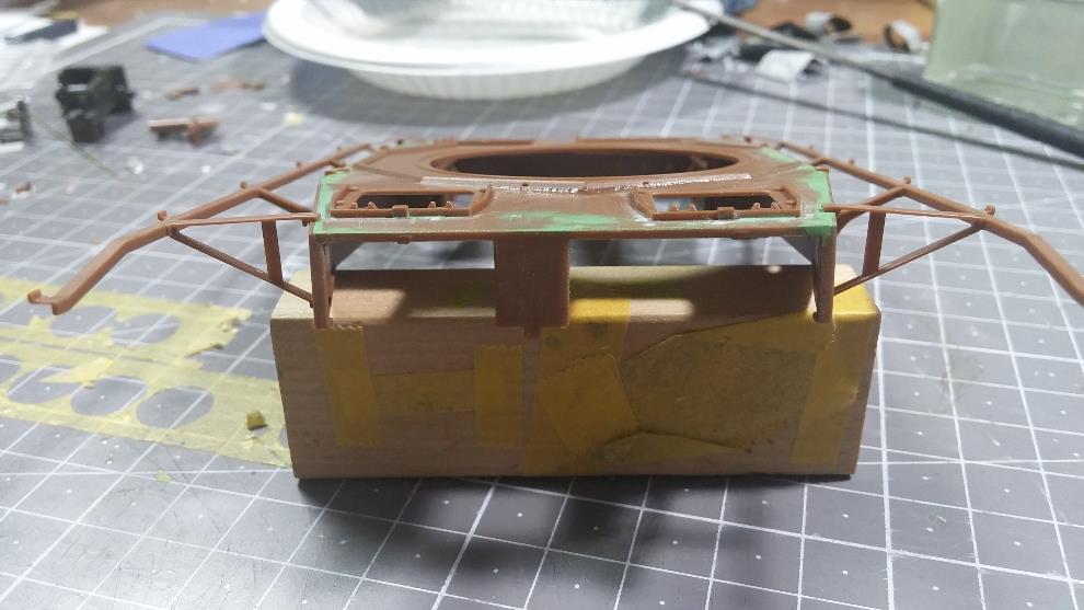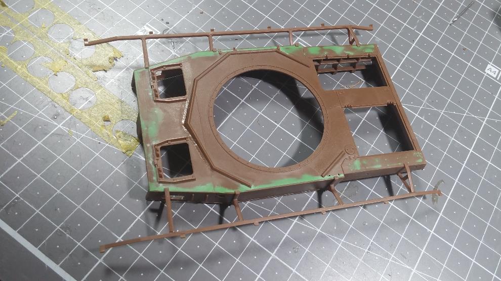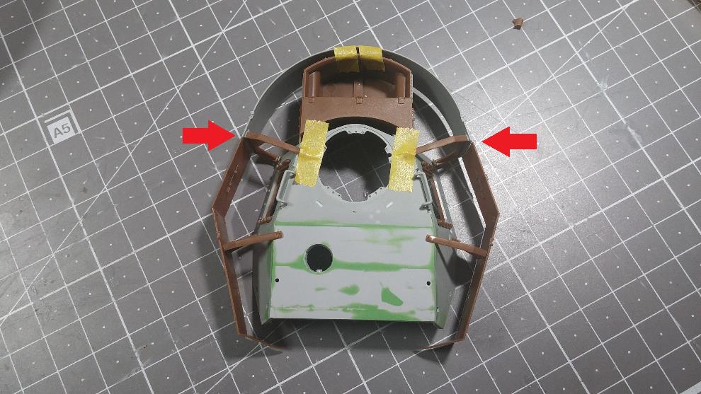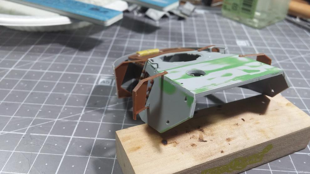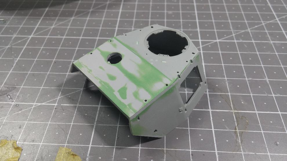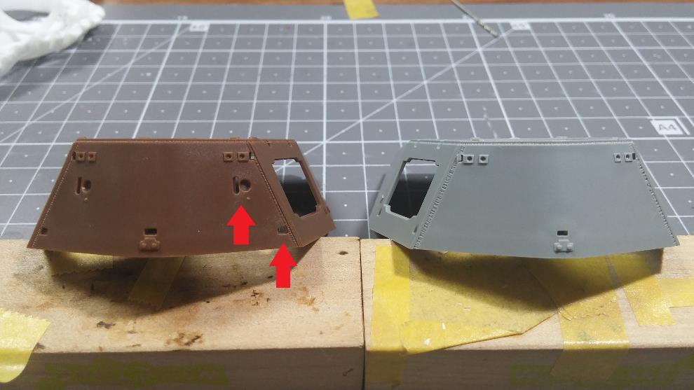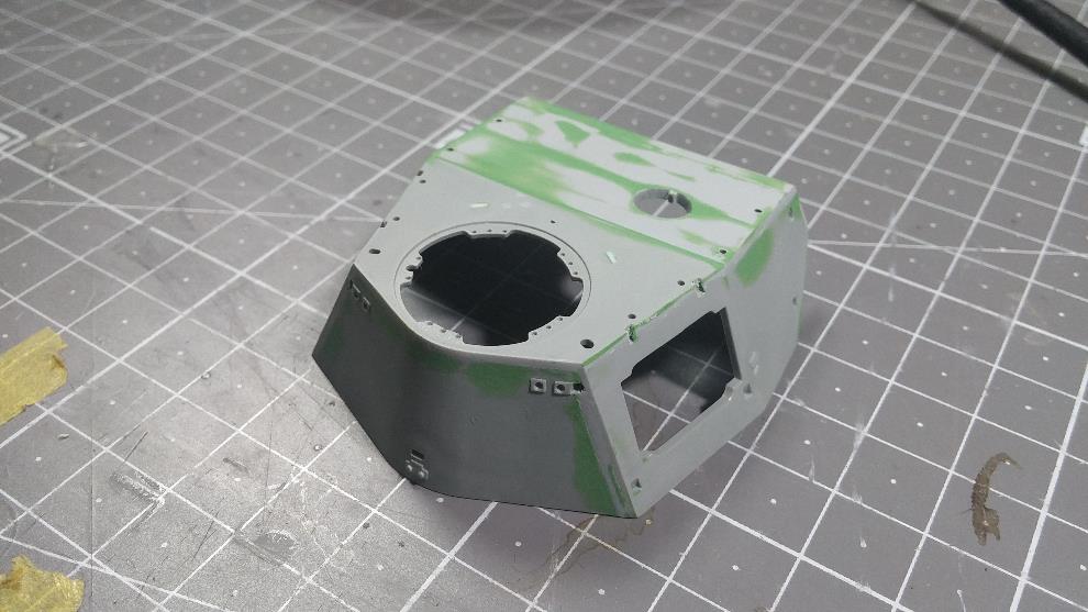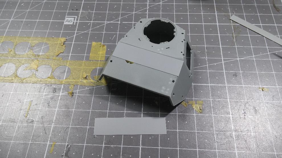 포탑 전면부도 윗부분 높이를 연장하고 CG대로 앞부분의 몰드 제거를 위해 스트립 & 퍼티를 발라줌