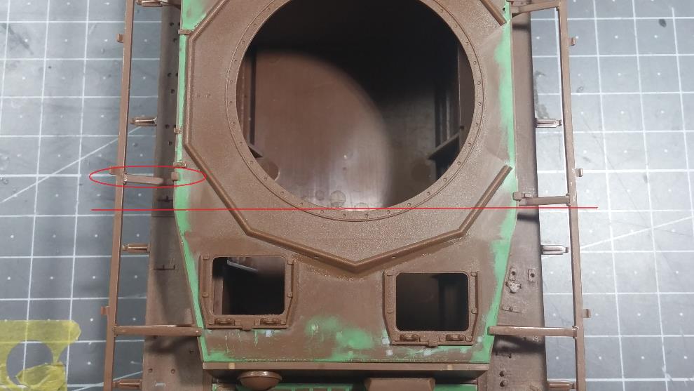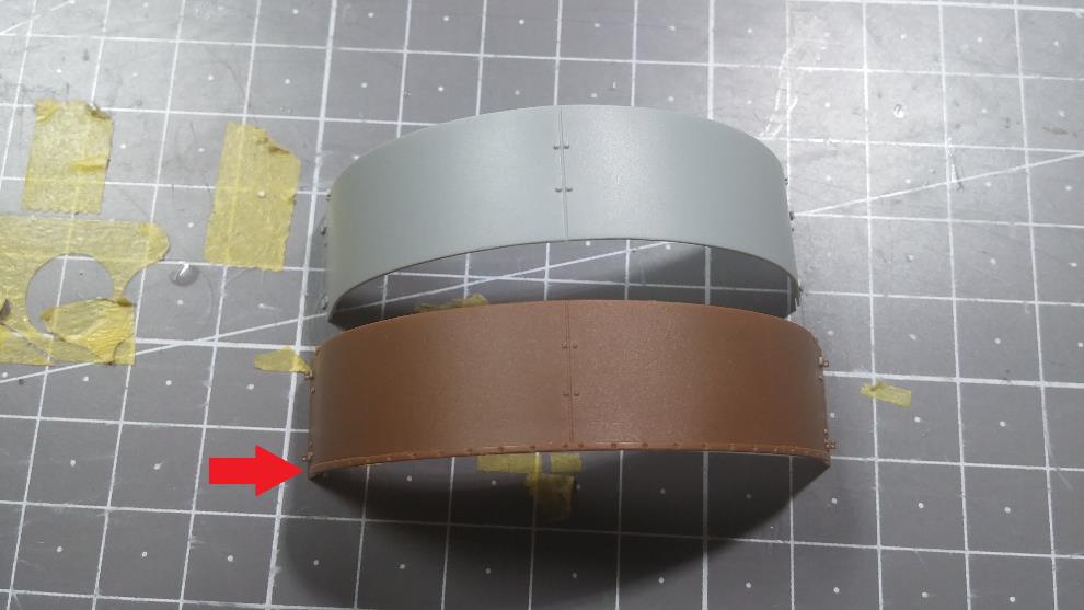 단차를 없애기 위해 넓은 폭의 스트립을 접착하고 포탑 용접선에도 붙혀줍니다.