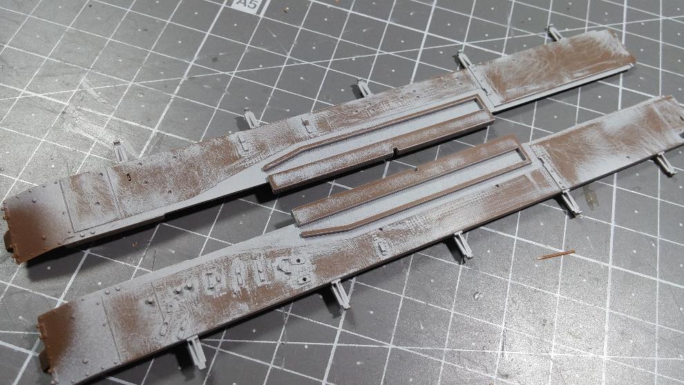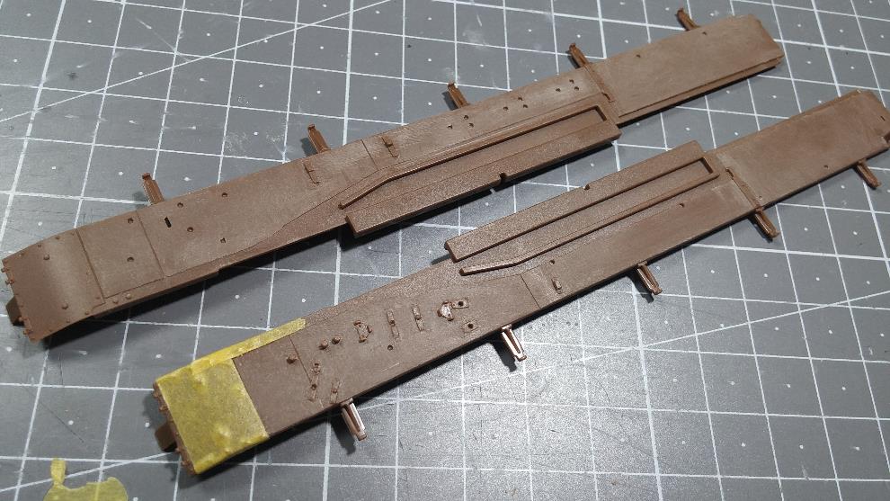 받침목은 킷 부품 그대로 쓰되 가운데 고정구는 킷 몰드를 밀어버리고 플라스틱 스트립으로 만들었습니다.