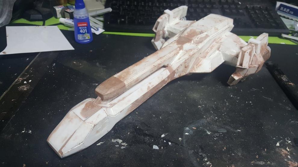 서페이서로 색좀 통일시킨뒤에 한번 더 사포질을 했습니다. 일부 디테일도 넣구요.