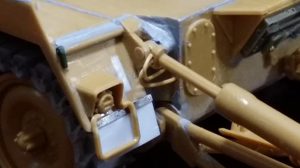 후방 스페이드 고정 부분을 플라판과 퍼티로 막았습니다. 파이프 2개도 양쪽에 붙였구요. 먼지막이도 다시 만들었습니다.
