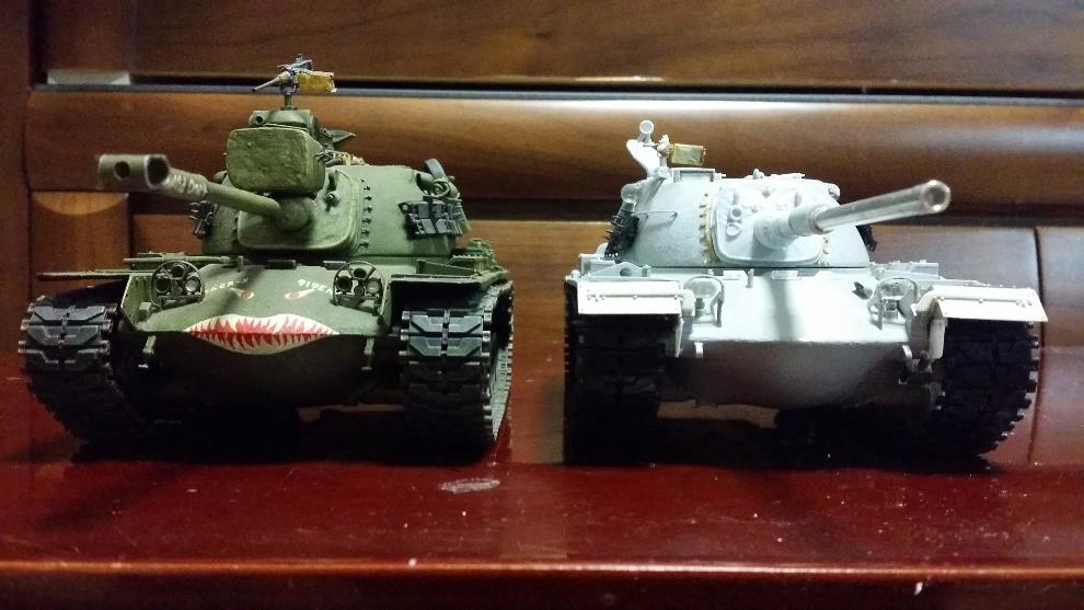 20여년 전에 만들었던 베트남전 미군 M48A3(아카데미 제품)와 한 컷. 미군 M48A3는 포방패와 서치라이트에 에폭시퍼티로 형상을 만들었고 프라판으로 조잡하지만 방수포걸이를 만들었습니다. 요즘은 별매로 간단히 해결할 수 있습니다만..