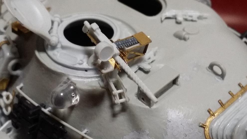 아카데미 M48A3 는 아시겠지만 차체높이가 맞지 않아 토션바 각도를 조정하여 접합하였습니다. 드래곤제와 비교하니 거의 차이가 나지 않네요. 최근 구입한 0.5 캘리버 기관총으로 업데이트를 하였고, 조종수 기관총탑 주위에 연막탄들을 거치하는 모습을 재현하려 연막탄을 만들어 접합했습니다. 안전핀과 손잡이를 추가할까 생각 중입니다..