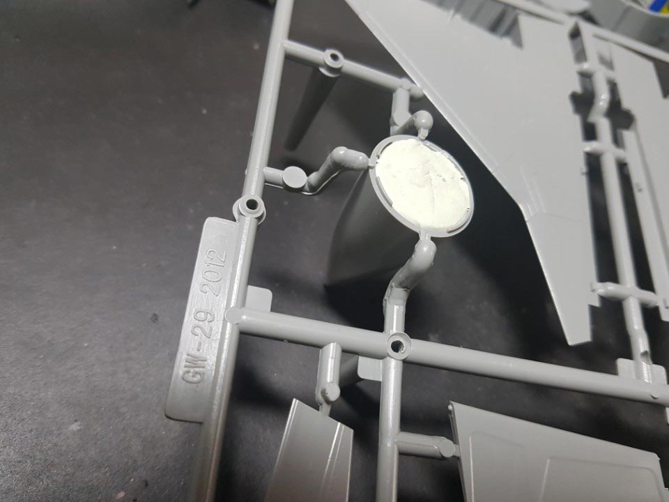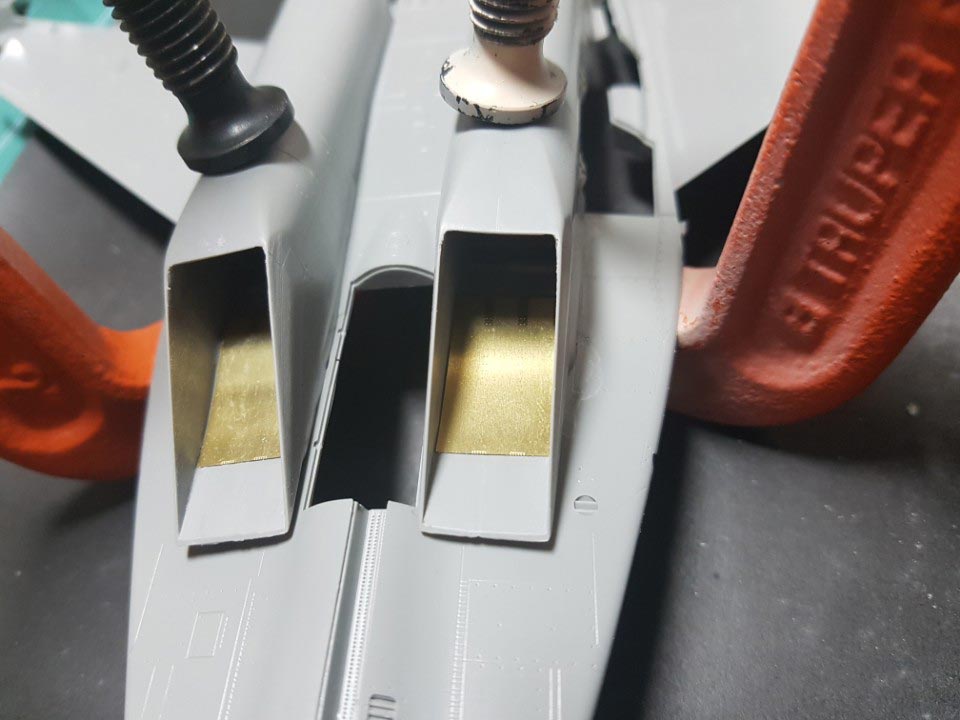 인테이크 안쪽 덮개? 마개? 닫은 상태는 프라 부품인데, 열린 상태는 에칭을 쓰게 되어 있습니다. 접착하고 잡고 있기