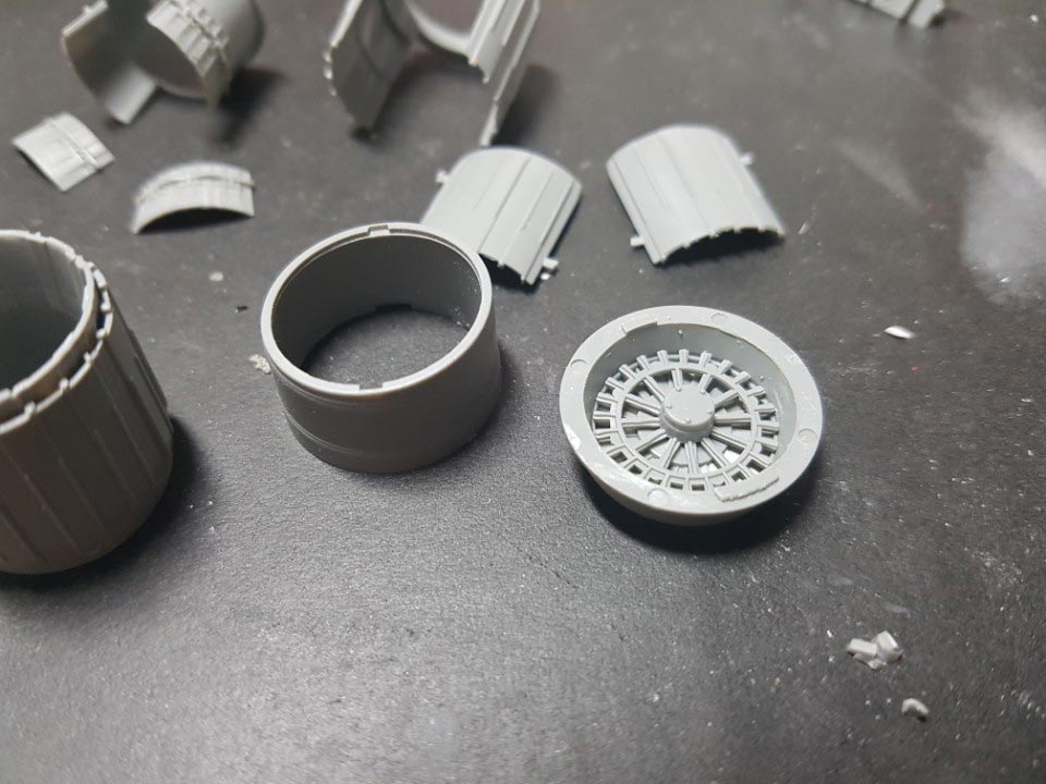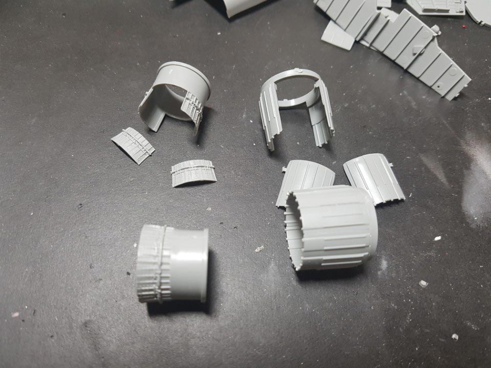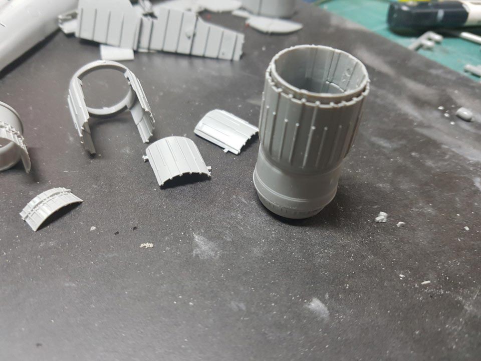 외부에서 보이는 엔진 쪽 부분들은 조립하면 이렇게 나옵니다. 엔진 안 쪽 팬 같은 것도 재현이 되어 있는데, 조립하고 나면