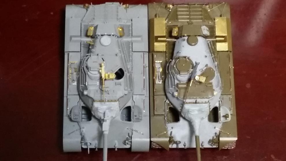 궤도 비교 : 타콤(왼쪽)이 정확한 표현, AFV클럽제 별매궤도(우측)은 돌출무늬가 얇죠.
