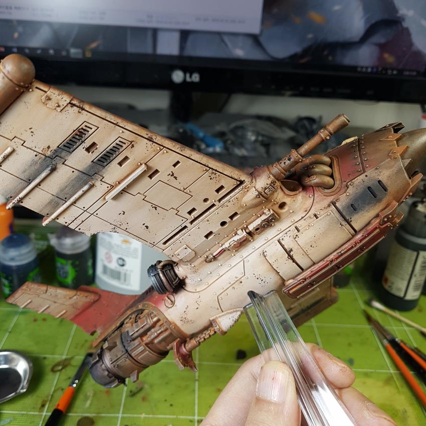 원래는 아크릴 베이스 워시를 쓰지만, 대형 모델이다보니 자국이 남게 되면 뒷 처리가 힘들어서 쉽게 할 수 있는 에나멜 워싱을 했습니다.
