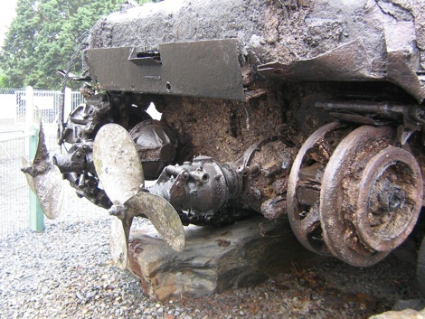 셔먼 DD 도하판의 전방 부분을 잘 알 수 있는 부분인데, 우측은 다채로운 상황에 의해 훼손이 되었으나 왼쪽의 모습을 보시면