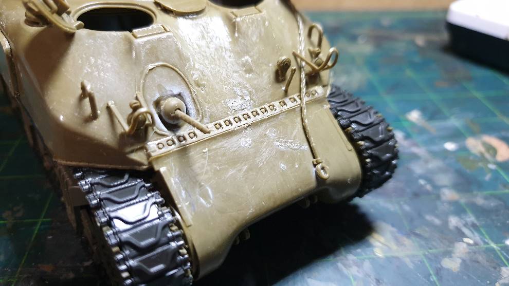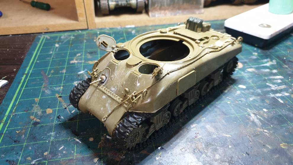 그런 포탑의 형상이 아닌 볼륨감있는 모습입니다. 이탈레리 셔먼 칼리오페의 포탑을 쓸 예정인데 퍼티로 좀 두툼하게