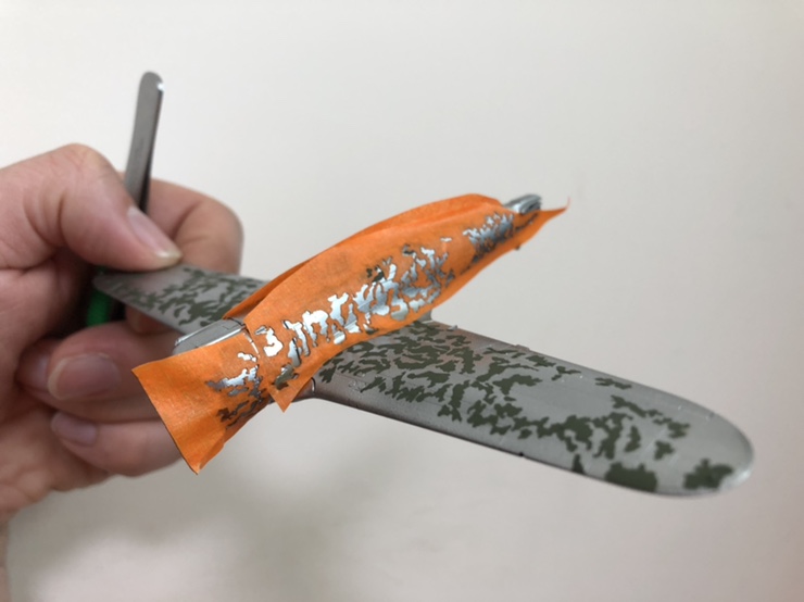 스텐실용으로 마스킹테이프를 자르는 것 까지는 좋은데, 이걸 다시 떼어서 기체에 붙이는게 여간 힘든게 아니였습니다...