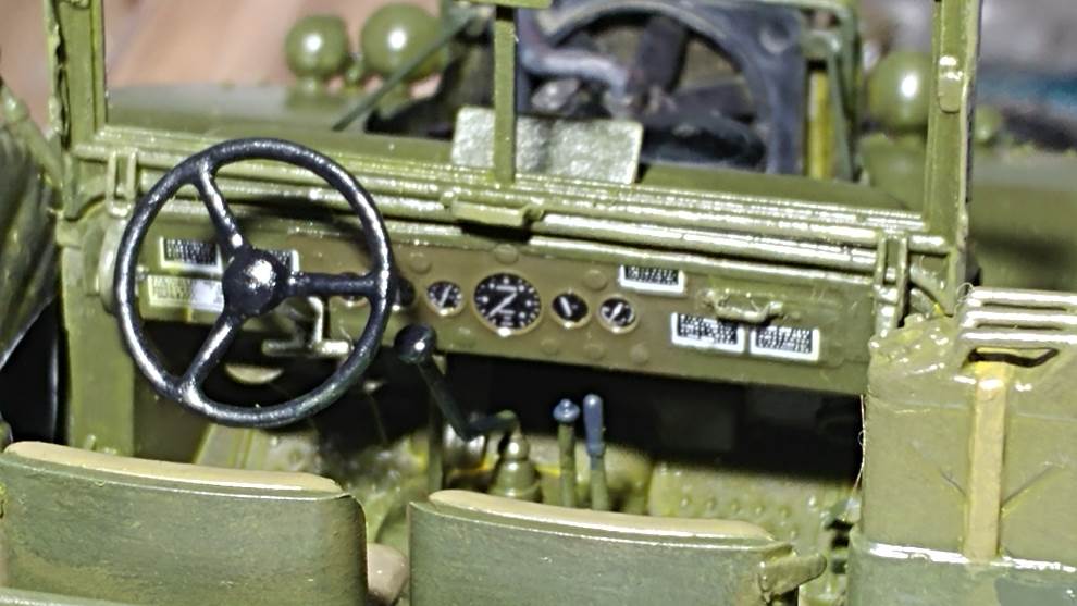 에칭과 데칼을 적용한 운전석 계기판입니다. 일단 필터링 등을 위하여 데칼 작업 후에 클리어를 올려 놓은 상태입니다.
