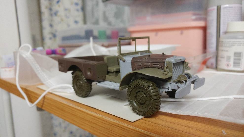 최근에 제작 중인 AFV club Dodge WC51 Truck입니다. 바퀴에 체인을 감고 캔버스 커버를 뒤집어 쓰고 눈밭을 달리는 트럭이 만들고 싶어서 시작하게 되었습니다.