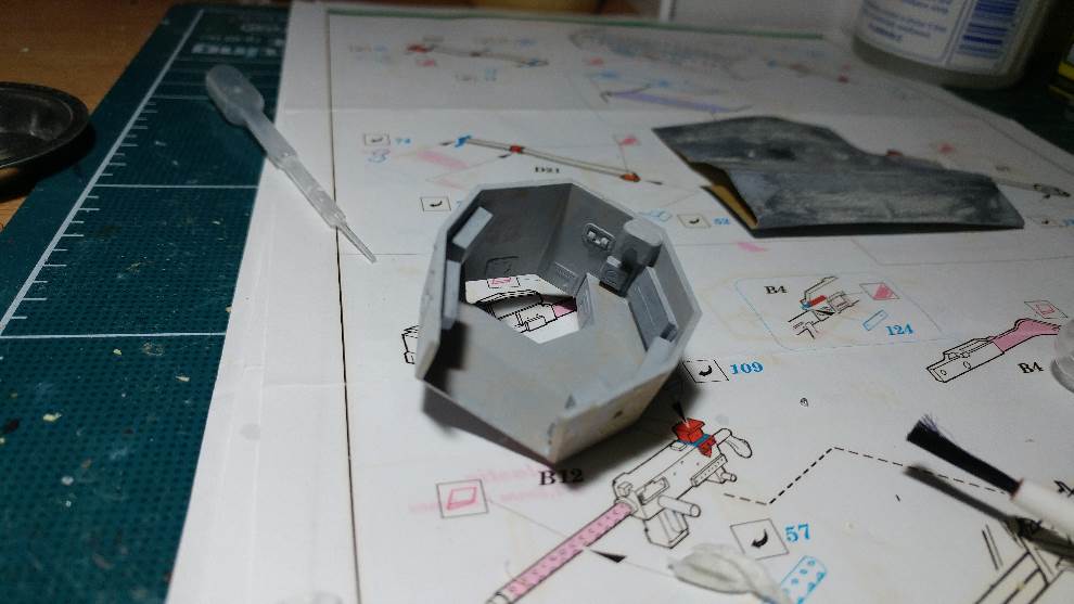 외장 부속이 몇 개가 아직 남았습니다만 (외측 기관총이나 연막탄 발사기 등) 포방패까지 일단 기본적인 조립을 진행합니다.