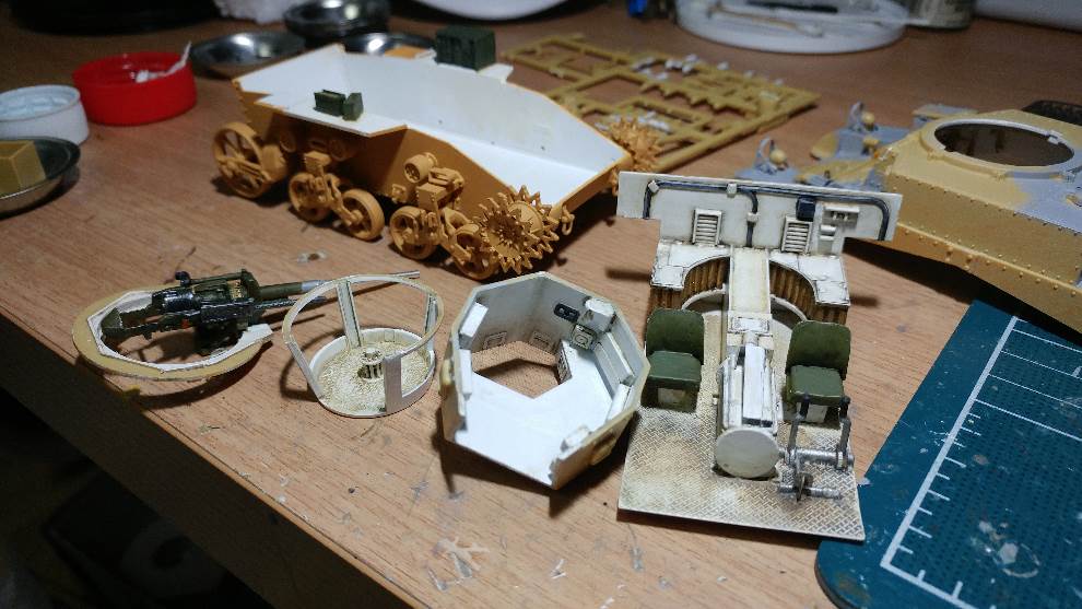 먼저 제작 중이던 닷지 트럭들의 도색을 진행하면서 옆에서 조금씩 만들고 있는 M3 Stuart전차입니다.