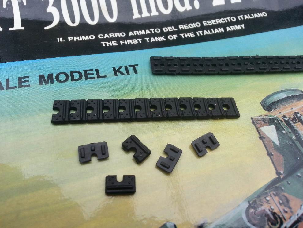 fiat3000 중에도 간혹 위의트랙을 단 녀석들이 있으니 전혀 고증이틀리다고는 할 수 없을 것 같네요^^ 다만 ft-17용 트랙을 달아줄 경우 하부 보기륜 고정부 전체를 3mm 정도 연장해줘야 헐렁하지 않게 장착이 됩니다. 그리고 전륜의 하얀 띠는 트랙이 미끄러져서 옆으로 빠지는 것을 방지하기 위해 플라판으로 만들어준 녀석입니다.