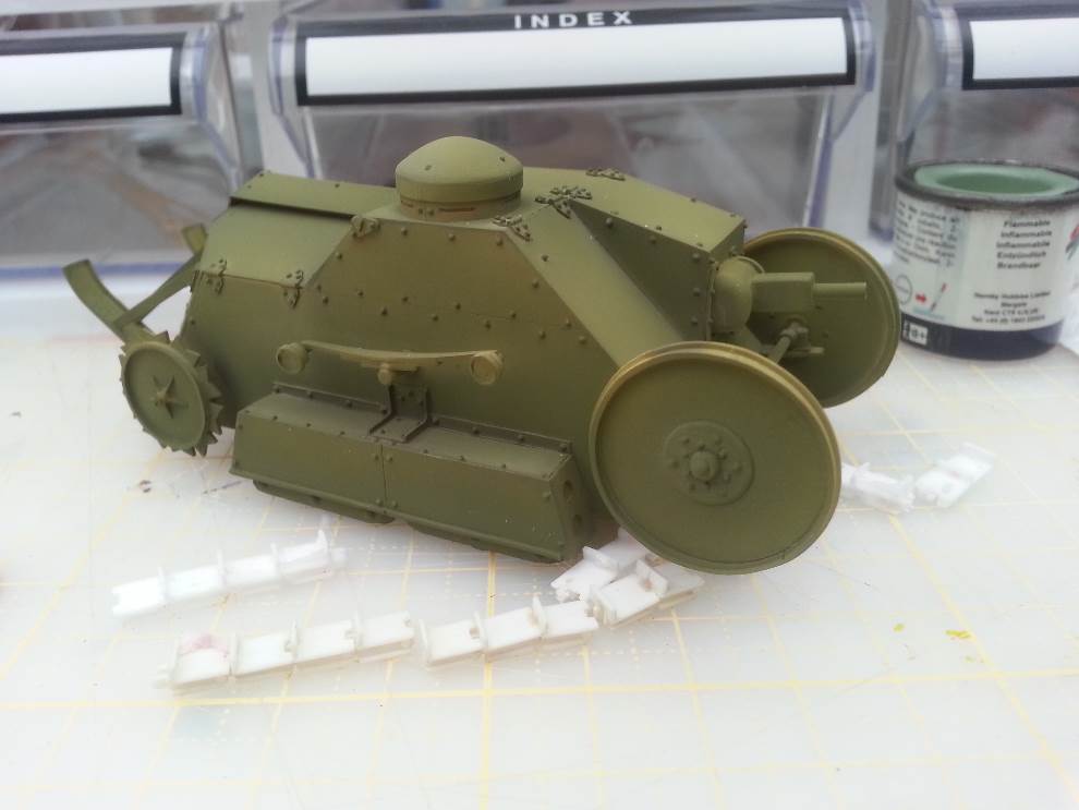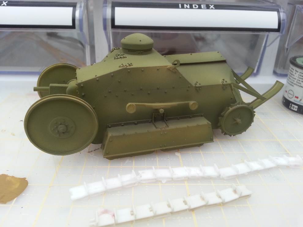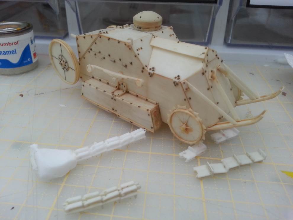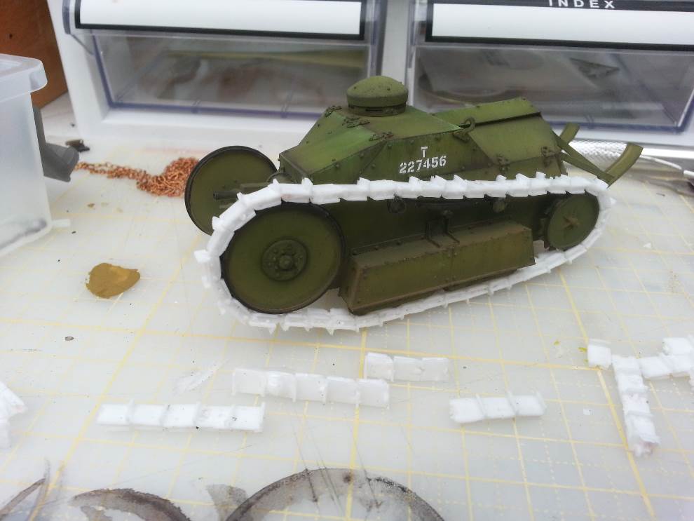 드디어 충분한 양의 트랙이 생산되자 지느러미 및 혹(?) 등을 다듬어 주고 순접으로 차체에 신겨줬습니다