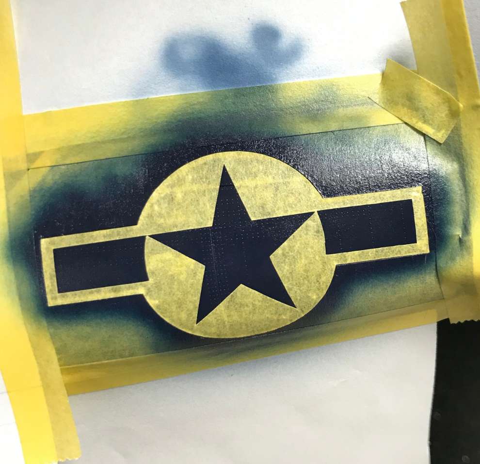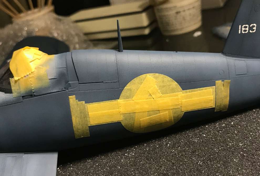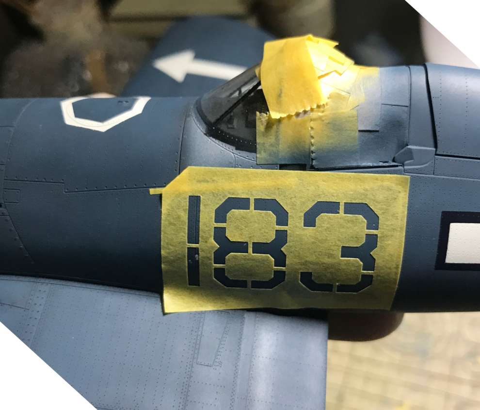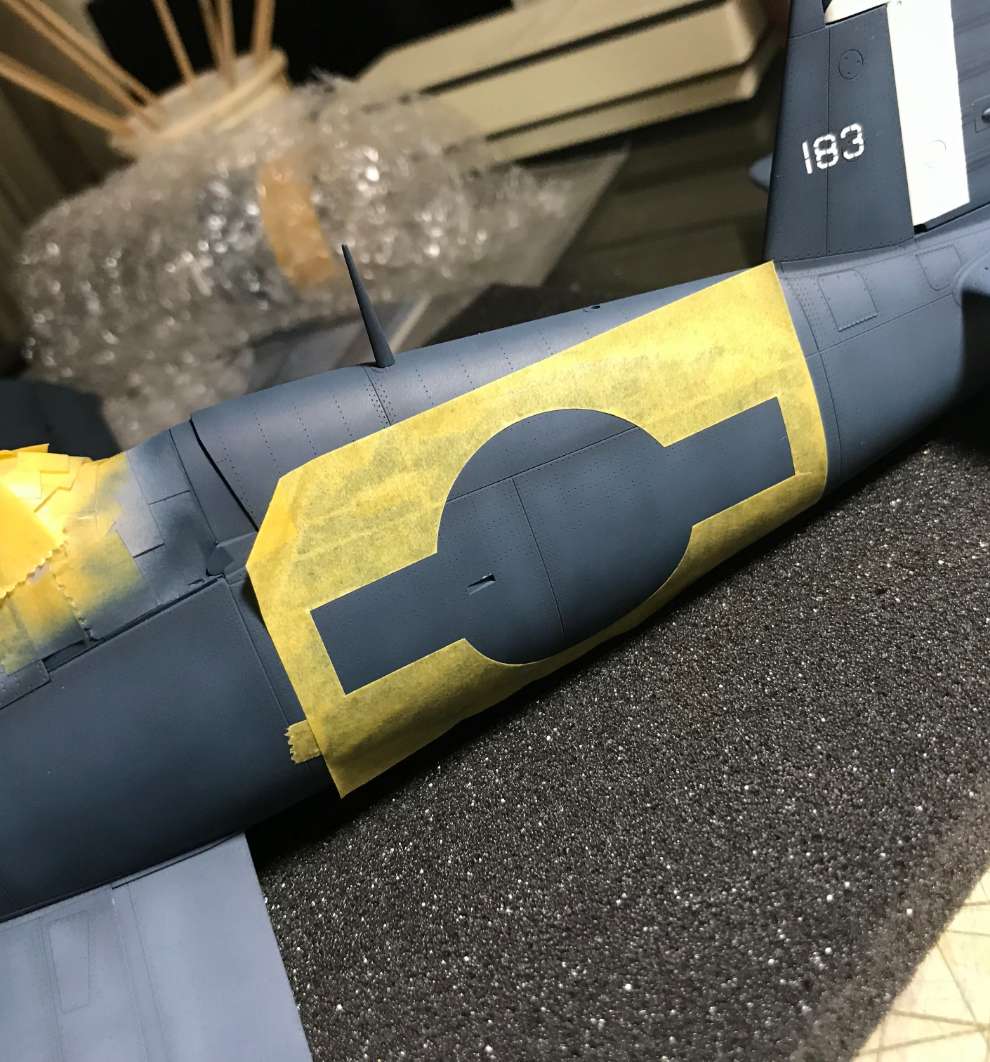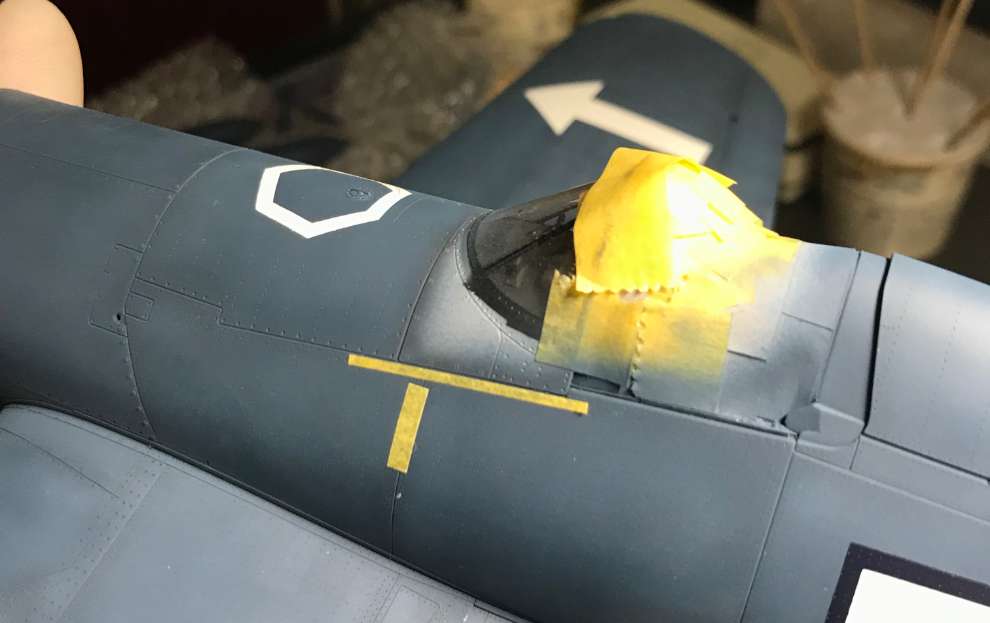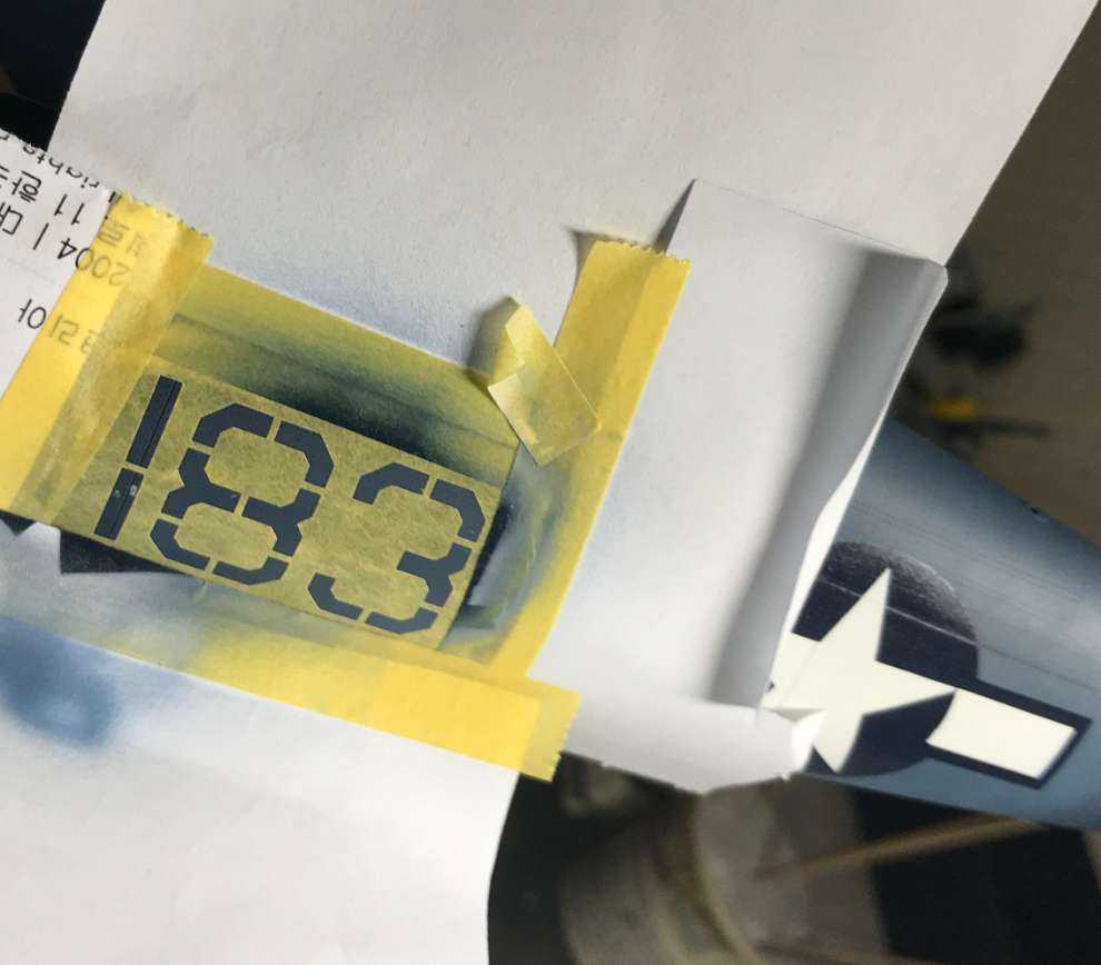 인시그니아 블루 휙../ 처음 국적 주익상부 마킹할때 휜색먼저 했는데 엣지에 흰색이 남아있어 안전하게 블루먼저 하는걸로 방향 설정