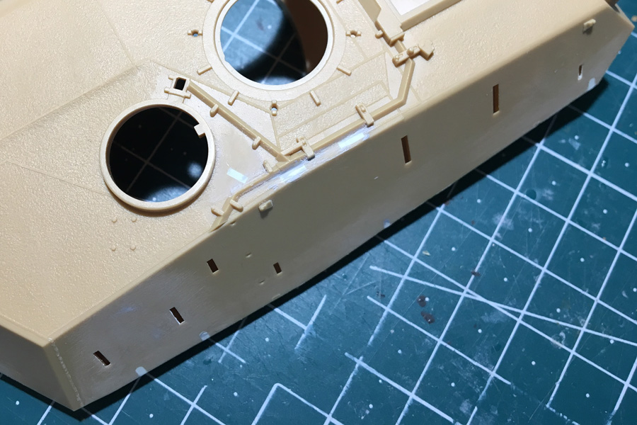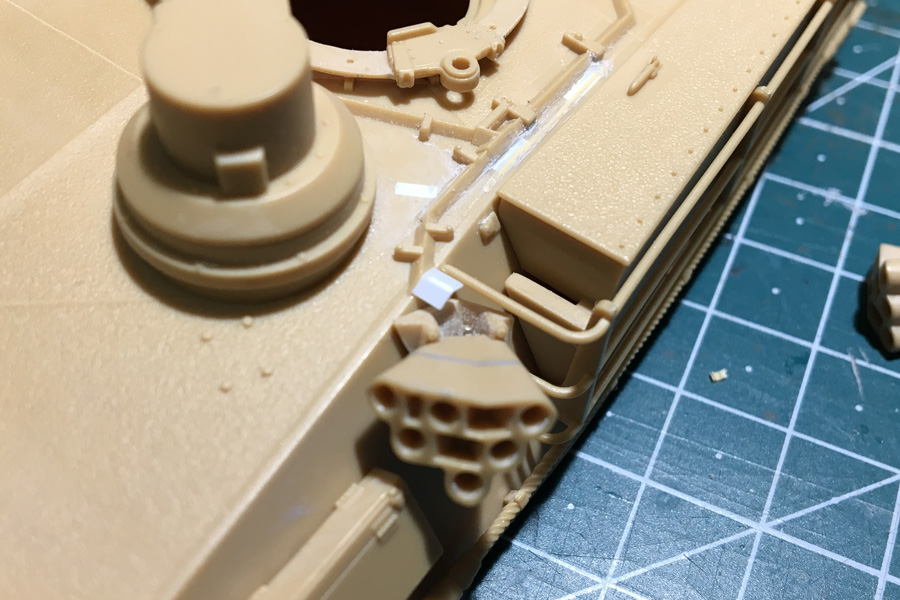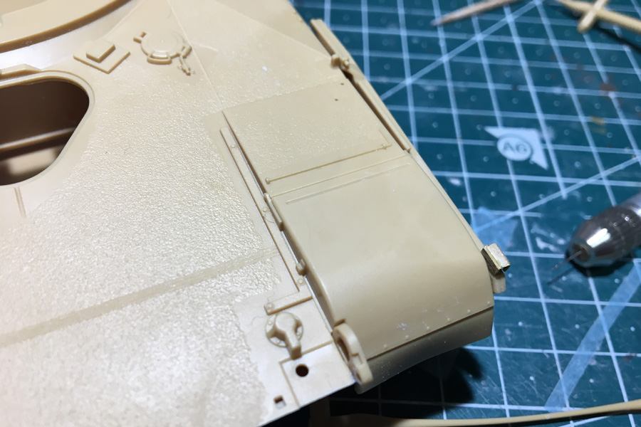 이제 포탑으로 넘어옵니다. 흉측하게 뚫려있는 케이블 구멍을 메워주고 (이것도 수정됐다는군요), 탄약수석 방탄판 구멍을 메우고 용접선을 추가해 줍니다. 아카데미에서 M1A2 SEP같은 바리에이션에 별 관심이 없다는 증거가 되는 부분이기도 한데, 그래도 이런데는 그냥 반구멍 같은걸로 처리해줬으면 좋았을텐데 말이죠.