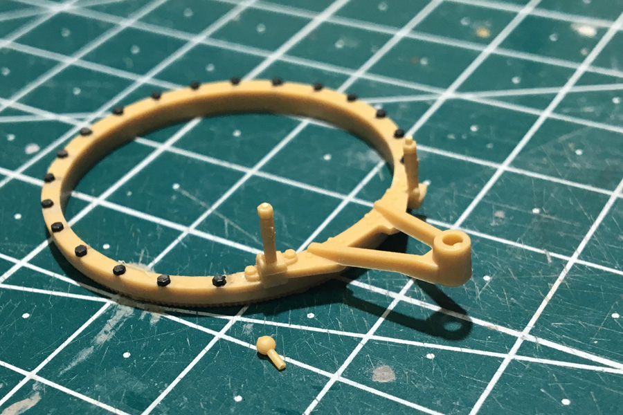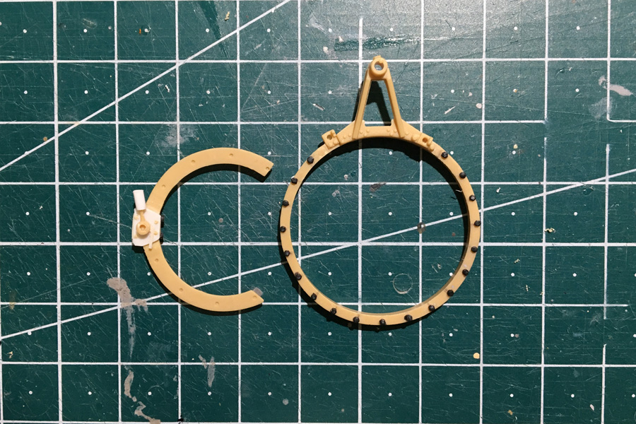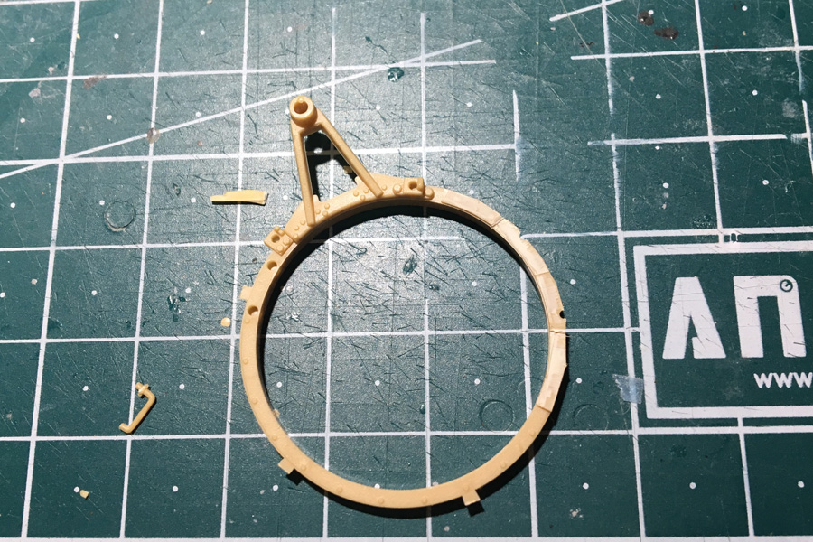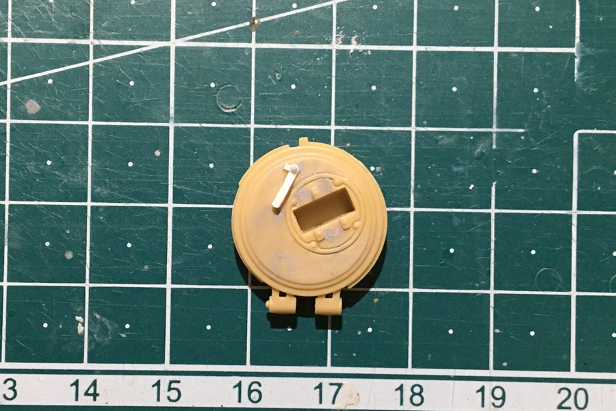 전차장큐폴라의 기관총 마운트에는 TUSK용 몰드가 있어 수정이 필요합니다. 불필요한 몰드를 밀어내고, 구멍을 메우고, 수정한 부분에 볼트머리도 추가해야 합니다.