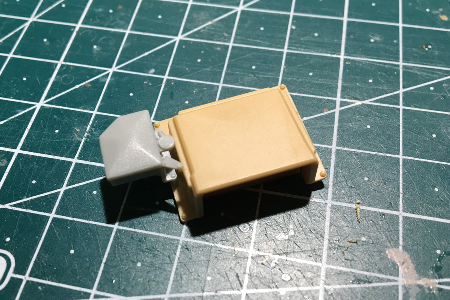 연막탄 발사기 마운트는 실제로는 철판 여러장이 겹친 꽤 복잡한 모양인데, 상당히 단순화돼 있습니다. 그대로 다 재현하기는 어렵고, 꽉 막힌 부분이라도 뚫어서 최소한의 성의 표현은 해 줍니다.