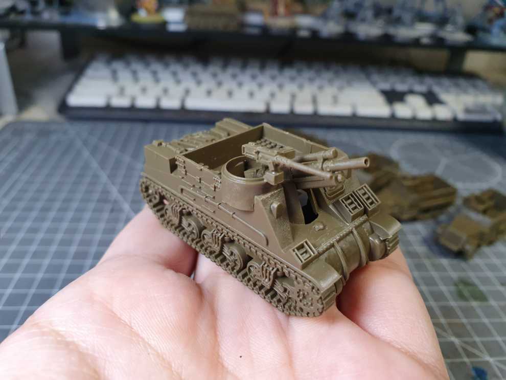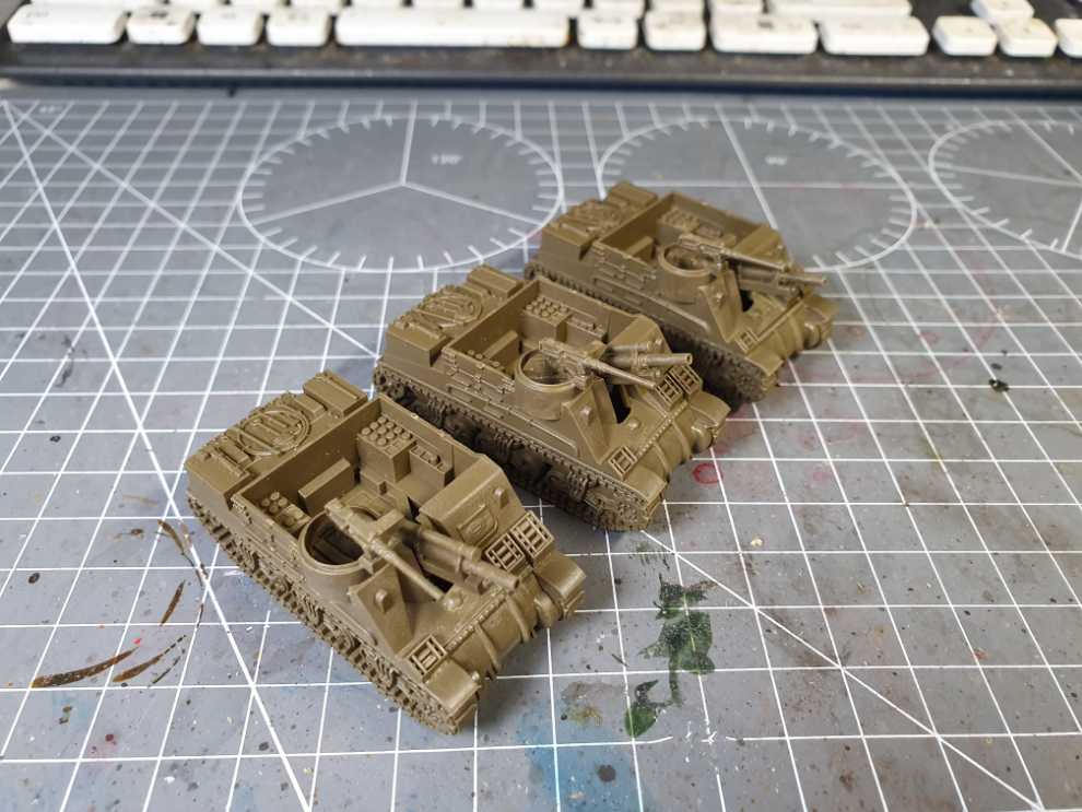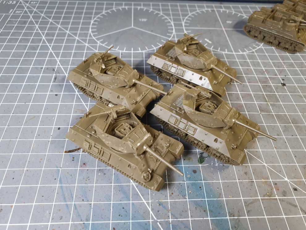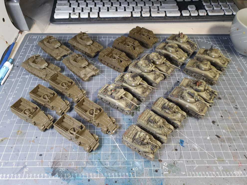 M10 3-Inch 소대. 원래는 중대 규모로 작업할까 했지만 중대 본부 역할을 해 줄 M20 신규 킷이 아직 발매 예정인 상태라 기다리기 싫어서, 소대만 작업하고 기계화 보병들을 추가 작업하기로 계획을 변경했습니다.