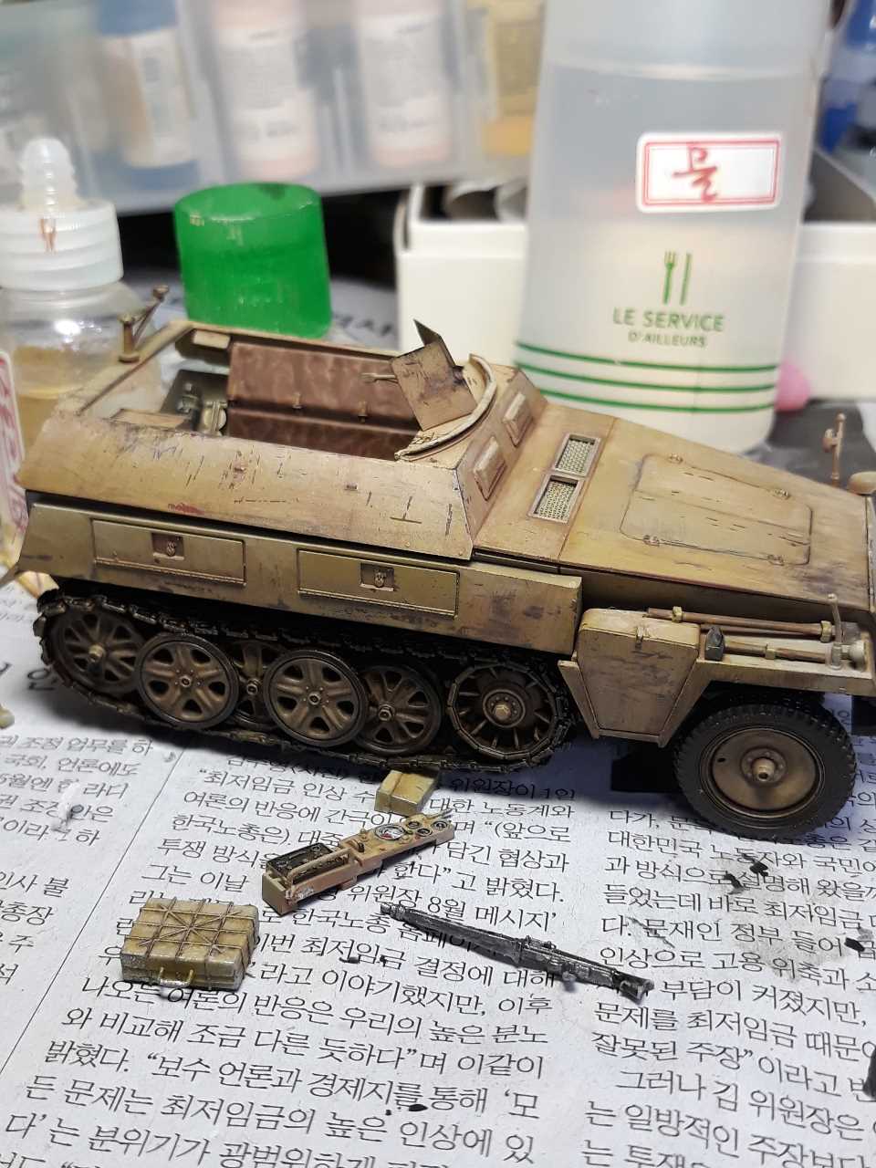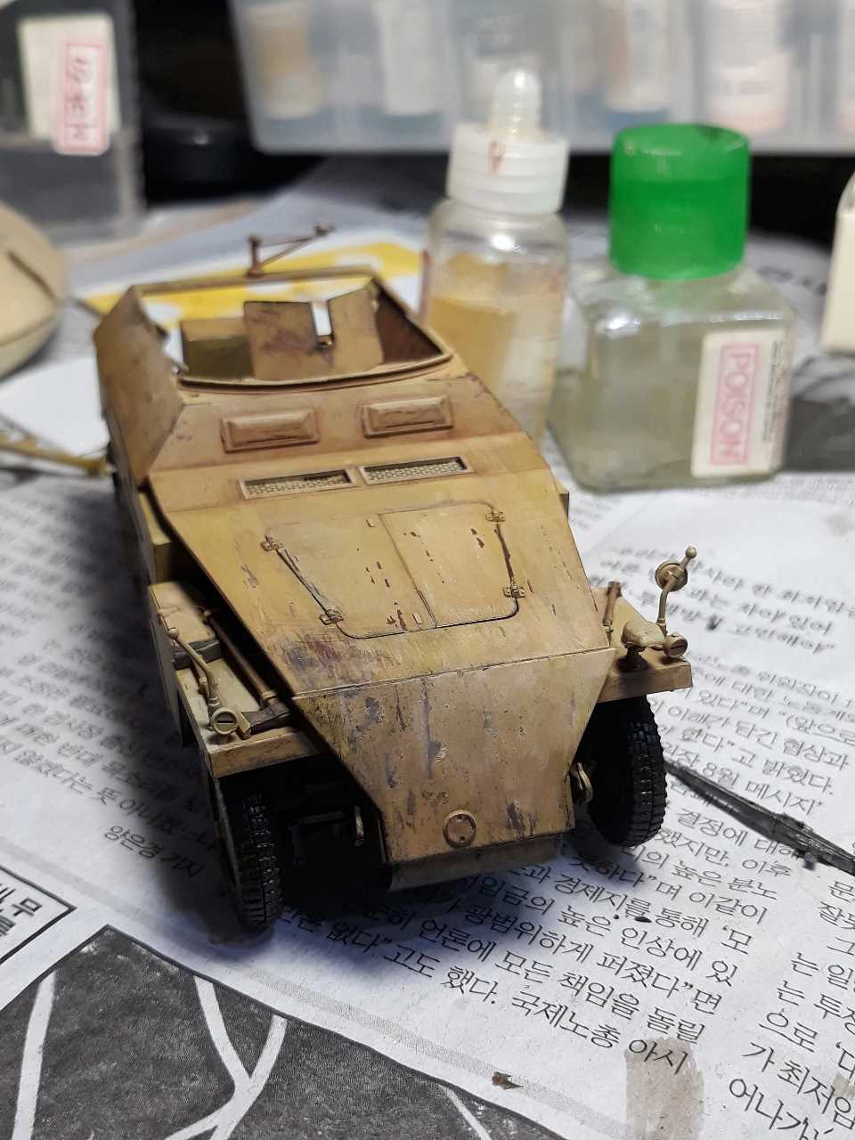 영국 제 1공수 사단에게 항복 받으러 온 독일군 장갑차입니다. 운전병 병과색을 분홍색으로 해야할지 흰색으로 해야할지 모르겠네요.