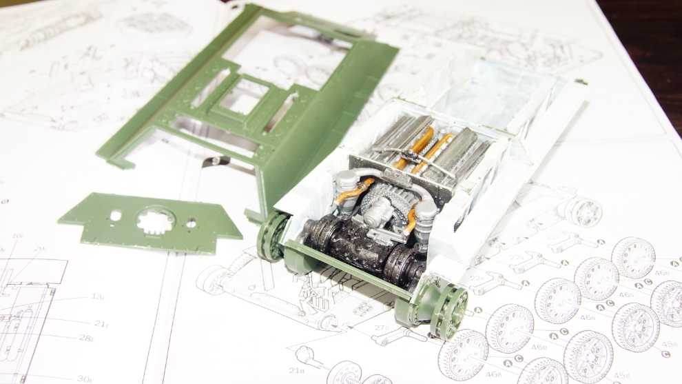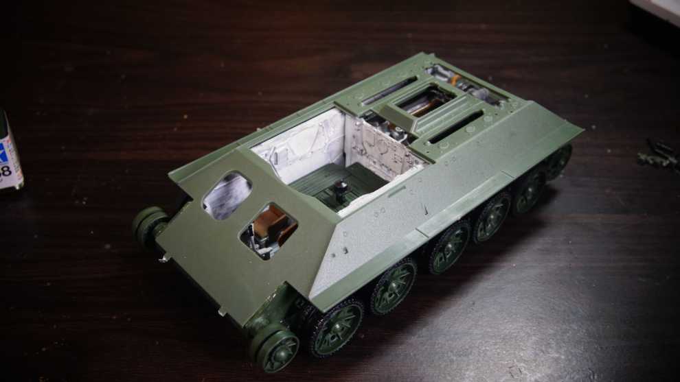 제작 도중 즈베즈다의 T-34 전차병 세트를 이용해서 조종수와 무전수를 태워줄까?도 생각했습니다만 내부 재현형을 염두하고 제작된것은 아니니 너무 일이 커질것 같아 그냥 사람 없는 것으로 만들기로 했습니다. (유령 전차?)