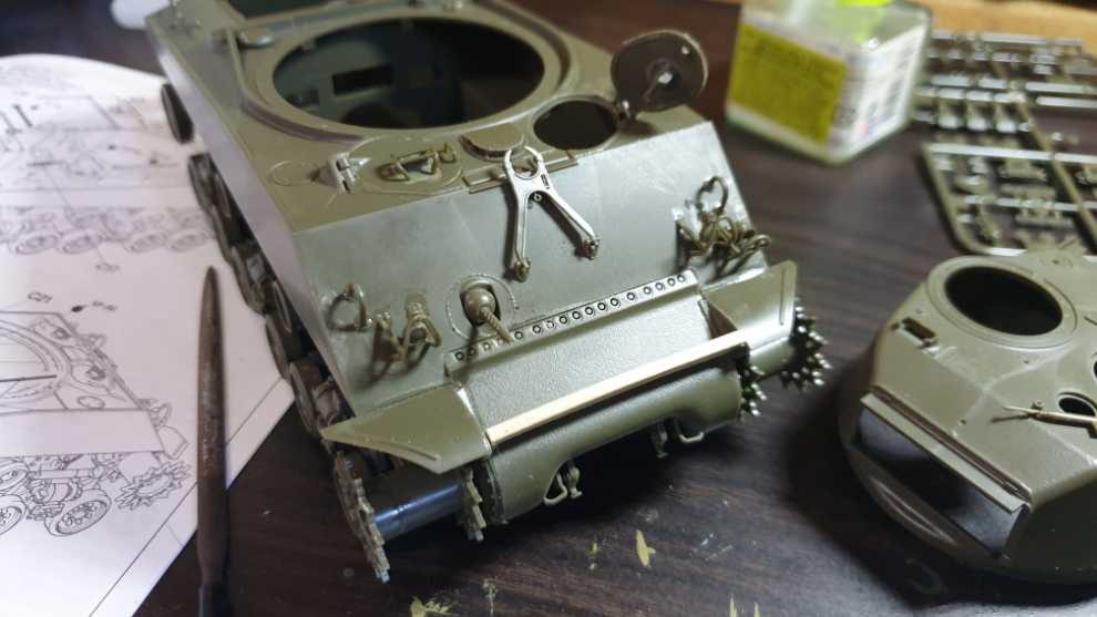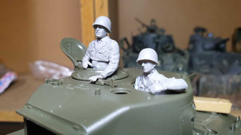 오늘입니다. 적당히 인형을 꺼내서 개조했습니다. 본 제품에 들어있는 좋은 타미야 인형을 써도 되겠지만 그건 이탈레리 M4A2 76mm 를 구매하여 14 기갑사단 M4A3 76mm VVSS 제작 때 사용해줄려고 합니다. (일부러 인형 런너와 장비품 런너 비닐도 안뜯음) 사진처럼 그대로 만드는것이 아니라, 마지막 사진(스티븐 잘로다 선생님의 작품)처럼 만들어주려고 인형을 개조해서 배치해주었고 처음엔 사진 그대로 만드려는 생각에 타미야 M1 카빈을 하나 뒀었는데 정황상 왠지 조종수의 것으로 보이지만 장전수 해치 앞에다 두기로 했습니다.