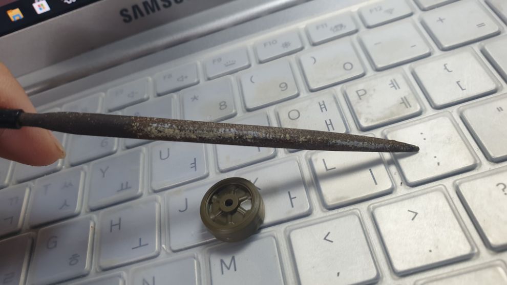 뚫렸습니다. 우리가 익히 잘 아는 방법대로 반대로 돌려주면서 빼냅니다.