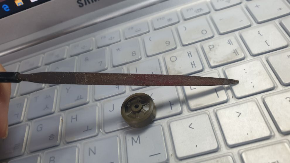 아랫쪽은 평평합니다. 먼저 볼록한 부분을 이용해 파팅라인을 갈아주고, 평평한 부분을 이용해 고무 부분 전체를 평평하게 만들어줍니다.