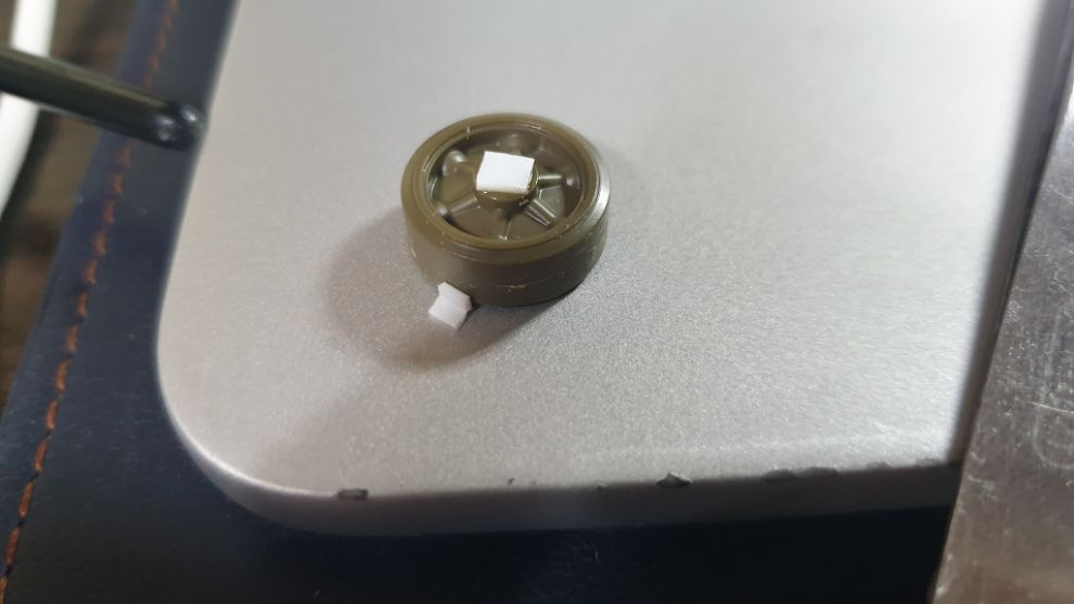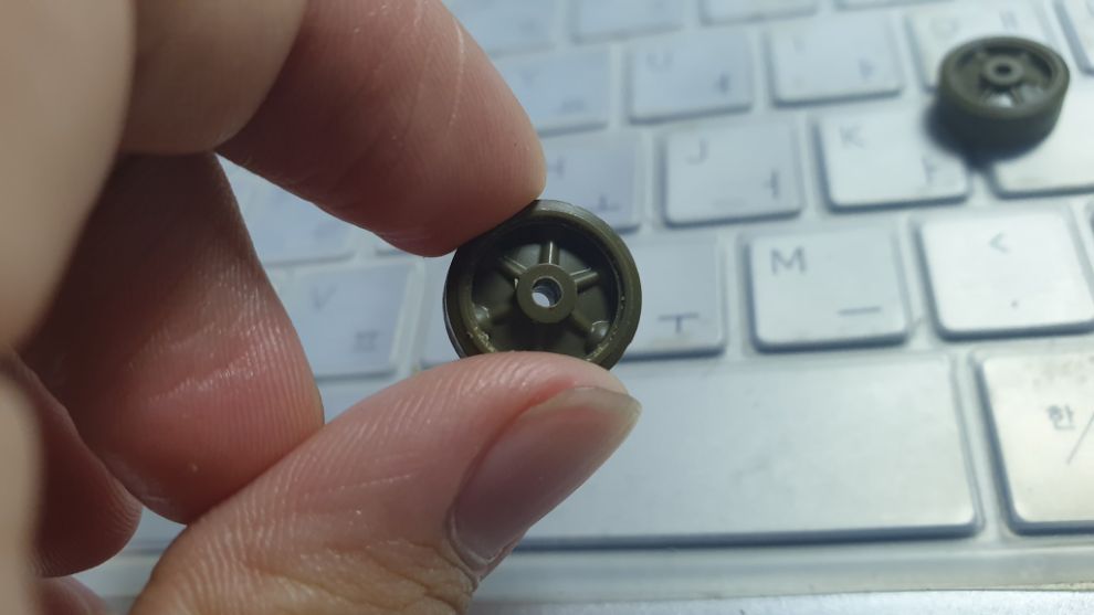 타미야 셔먼에 자주 들어있는 예비 바퀴입니다. 저의 경우 타미야 M1 슈퍼셔먼에 들어있던 M4A2 런너에 있는 불용 부품입니다.