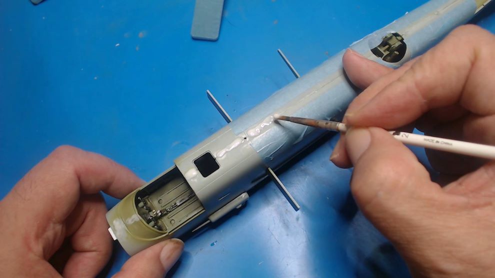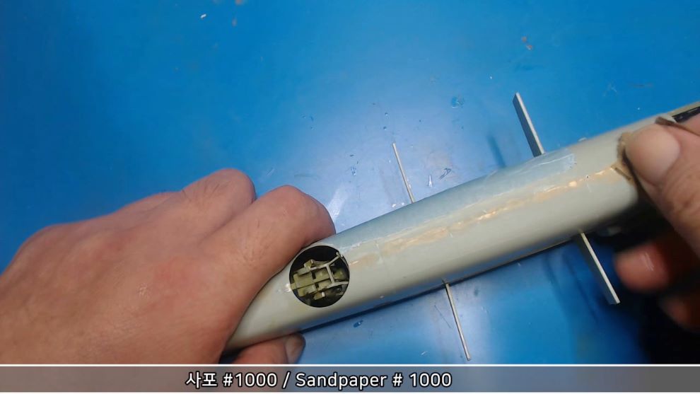동체에 홈이 있어서 런너 늘리려서 홈을 메꿉니다