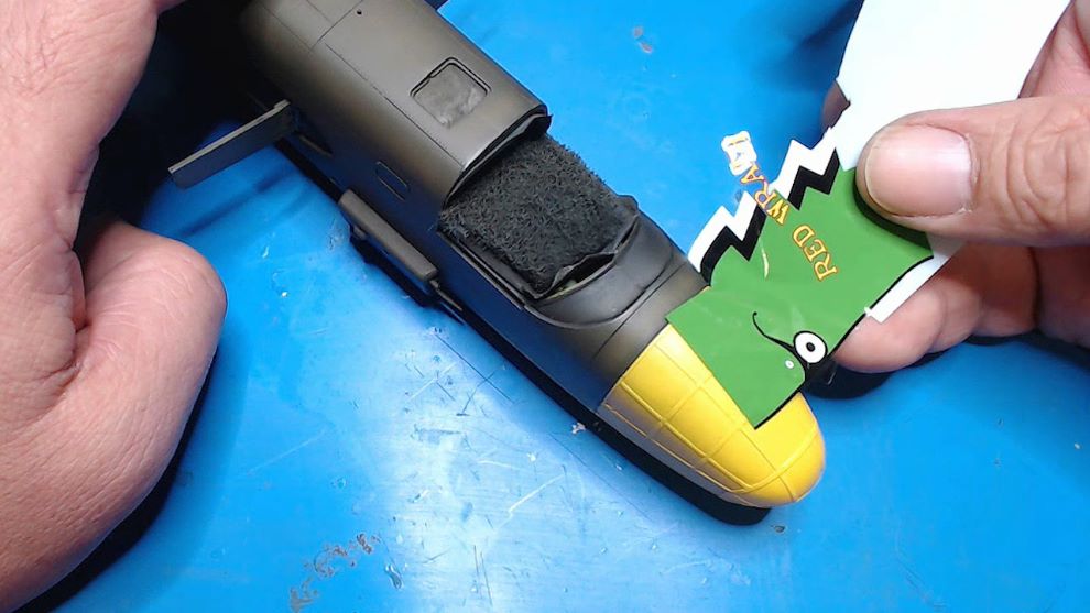 그다음 군제 마크 소프트를 발라서 완벽하게 붙혀주면 되는데 마크소프트를 발라주면 데칼이 노근노근해져서