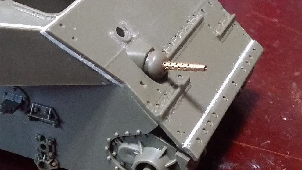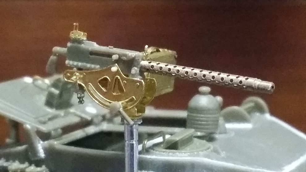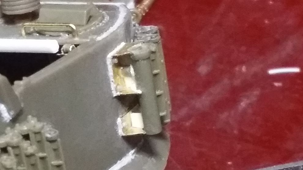 포탑 측면 기관총 거치대를 황동판, 프라판, 런너늘인 것 등으로 디테일업 했습니다.