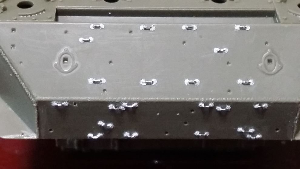 포탑의 용접선 몰드를 모두 밀어내고, 부품 사이의 틈새도 메우면서 용접선 표현도 동시에 했습니다.