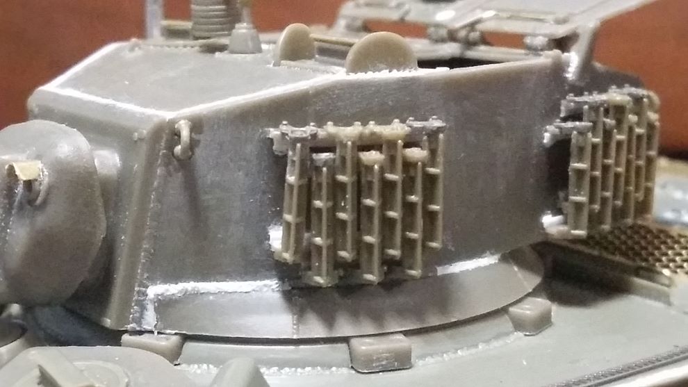 그랑우져를 포탑 측면과 후면에 붙이는 작업이 쉽지 않군요..
