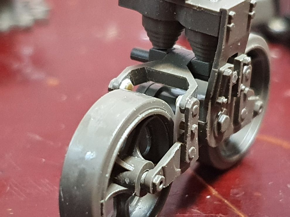 트래일링 서스펜션 부품에 커다란 수축이 있어서 핀바이스로 구멍을 낸 다음 런너 늘인 것을 끼우고, 무수지 접착제를 흘려넣어 밀착시킨 다음에 자르고 다듬으면 감쪽같습니다.